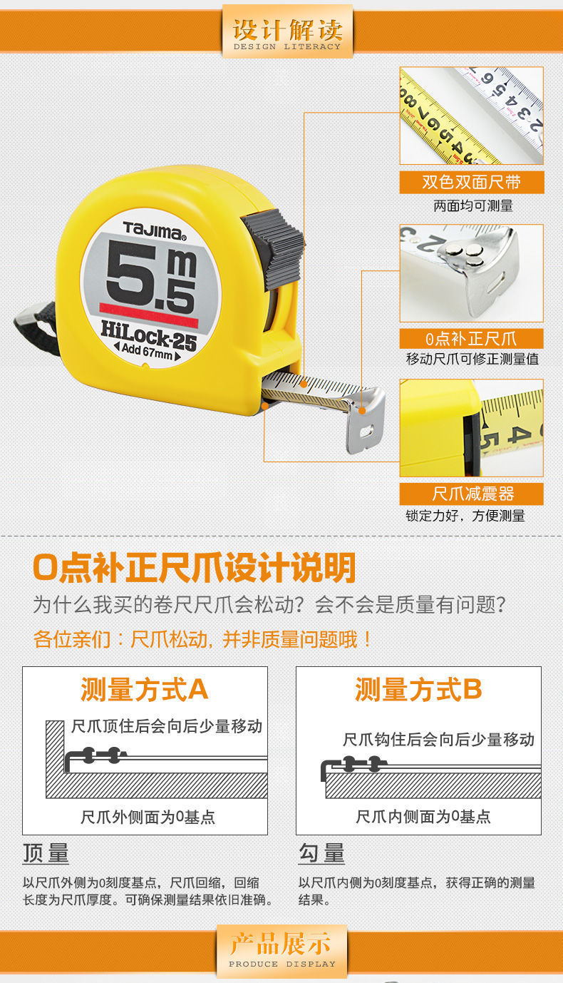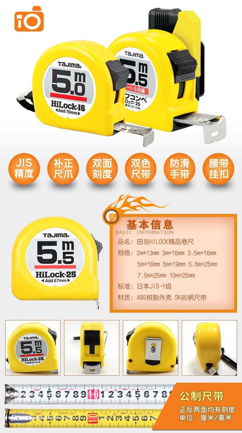 통치자 테이프 측정 Tian Dao 3.5.5 m 7.5 고정밀 프로스트 양면 강철 내마모성 상자 통치자 미터 통치자 당김
