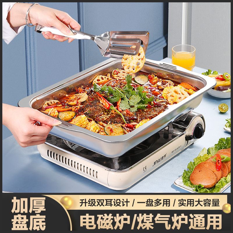 두꺼운 스테인레스 스틸 구운 어판 그릴 스퀘어 플레이트 더블 이어 트레이 유도 쿠커 가정용 상업용 오븐 높이 심화 도매스토어 가기
