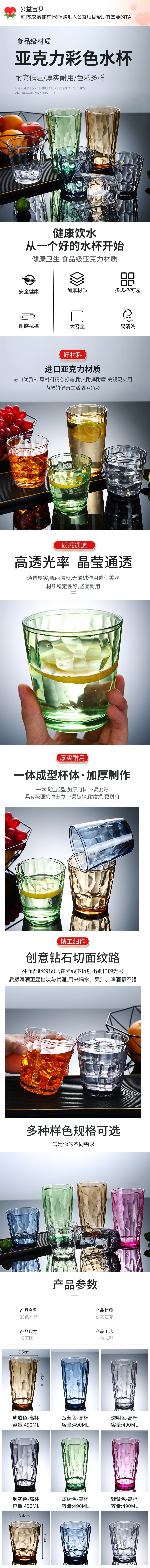 아크릴 컵 드롭 방지 플라스틱 물 컵 고온 저항하는 가정용 차가운 음료 컵 가글 컵 레스토랑 티 컵