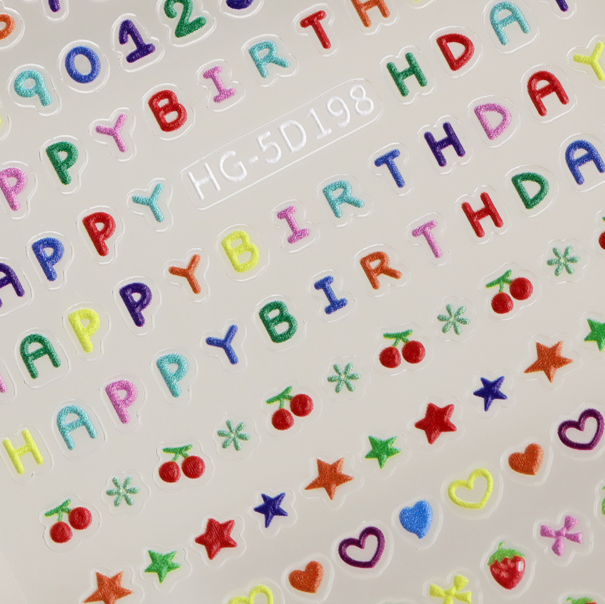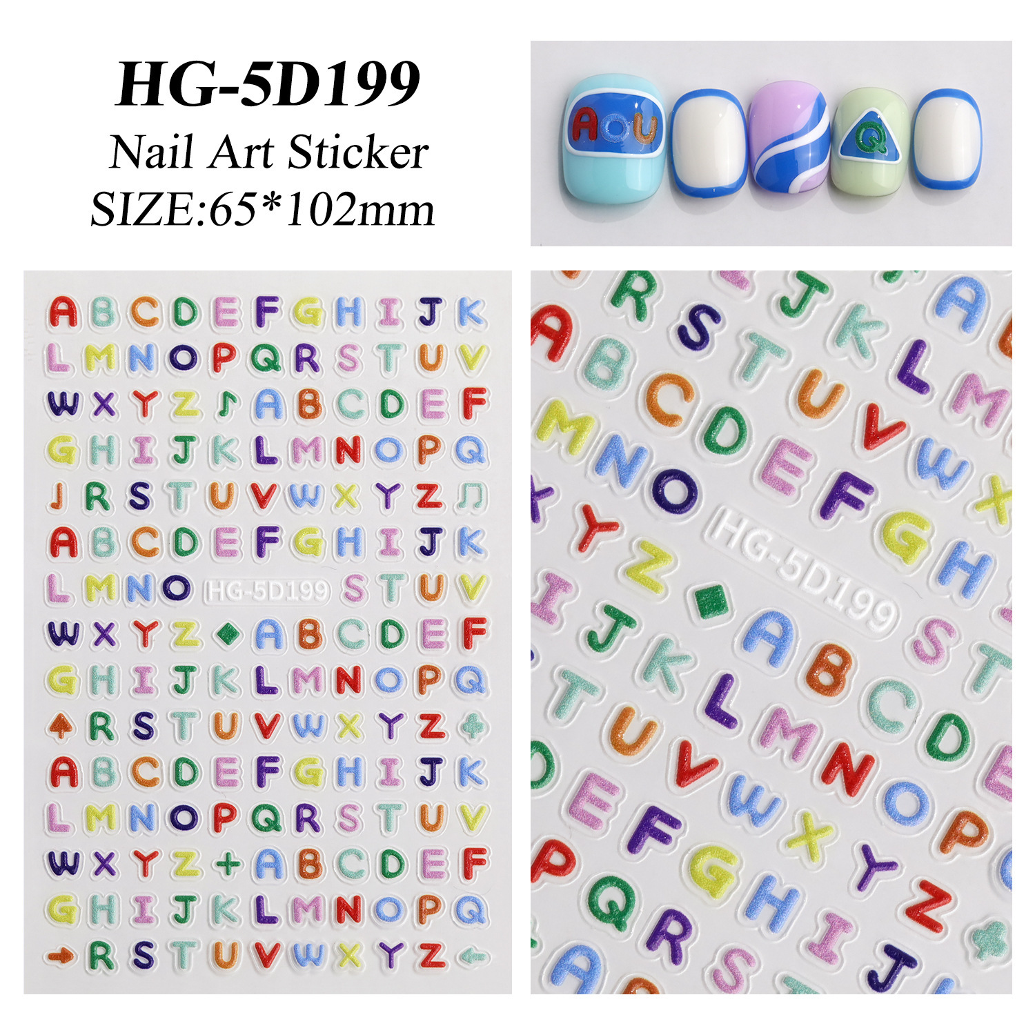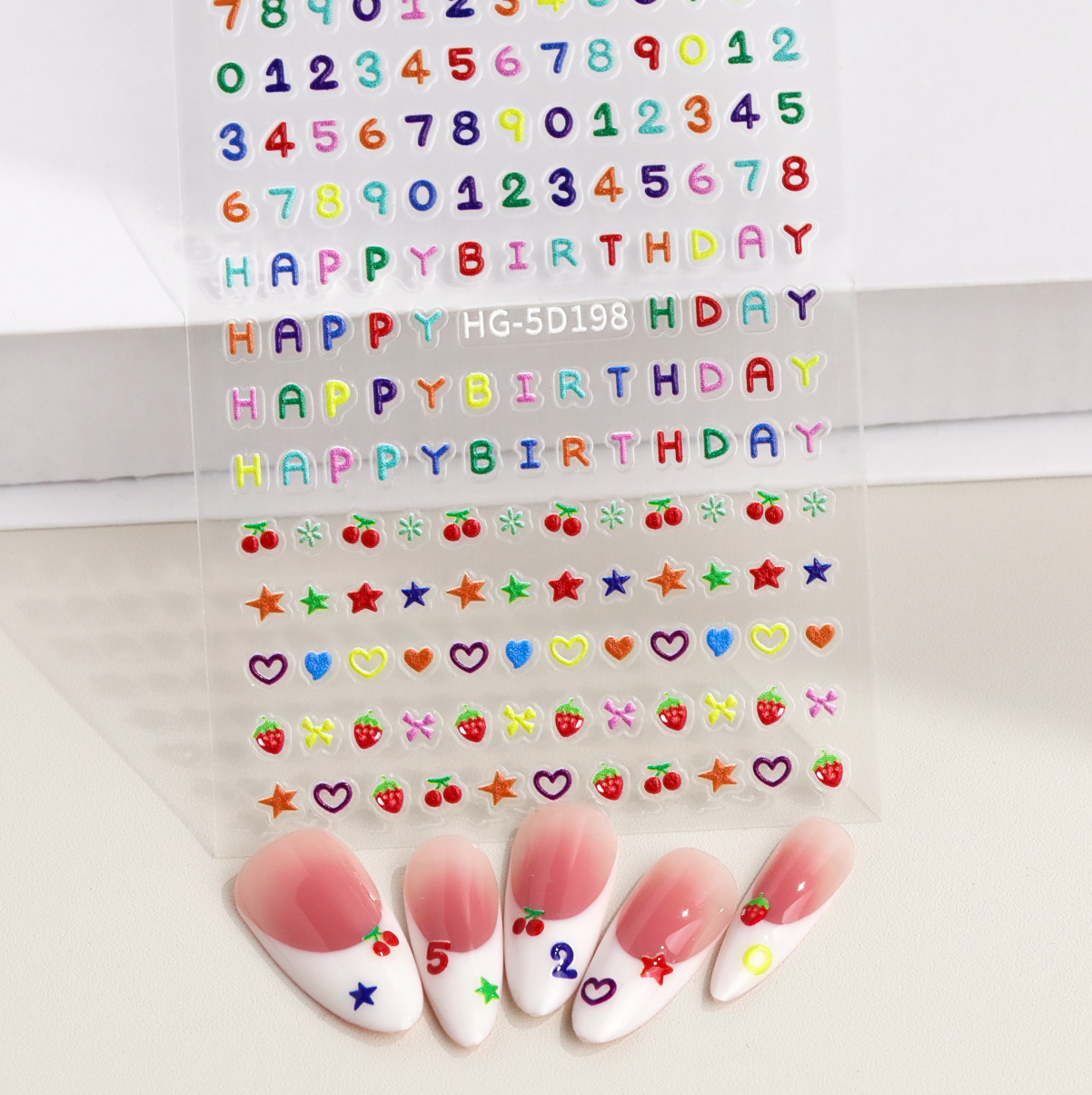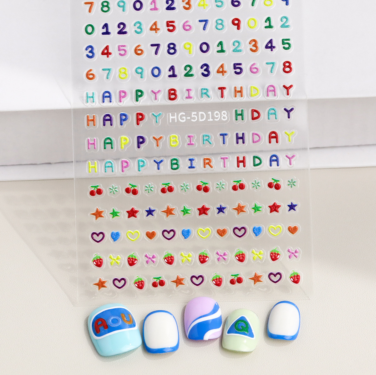 도파민 영어 편지 네일 아트 스티커 5D 구호 스테레오 아랍어 숫자 네일 스티커 보석 HG