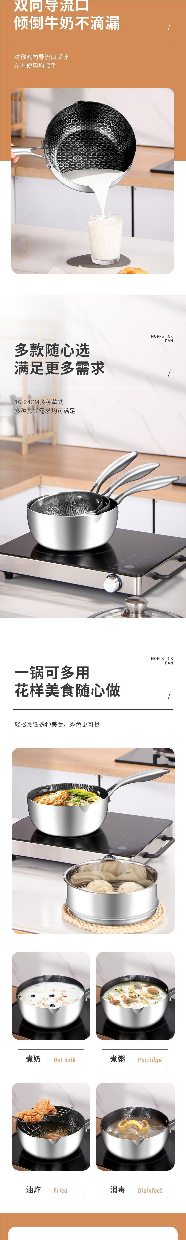 두꺼운 눈 팬 316 스테인레스 스틸 우유 냄비 베이비 푸드 보충 냄비 가정용 비 코팅 스틱 요리 국수 작은 냄비 Wen Wo
