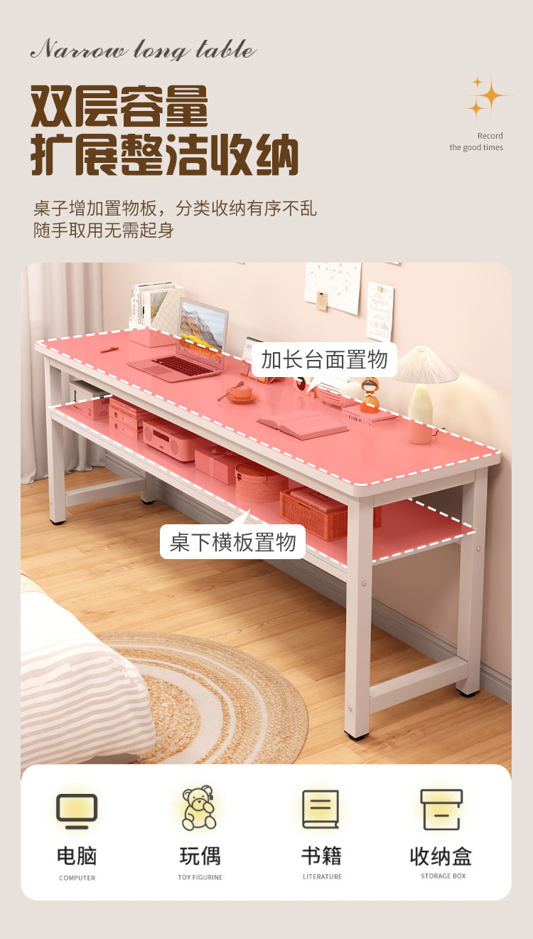 새로운 간단한 컴퓨터 책상 학생 책상 침대 옆 테이블 단단한 나무 긴 테이블 침실 벽 끝 테이블 매우 좁은 발코니스토어 가기
