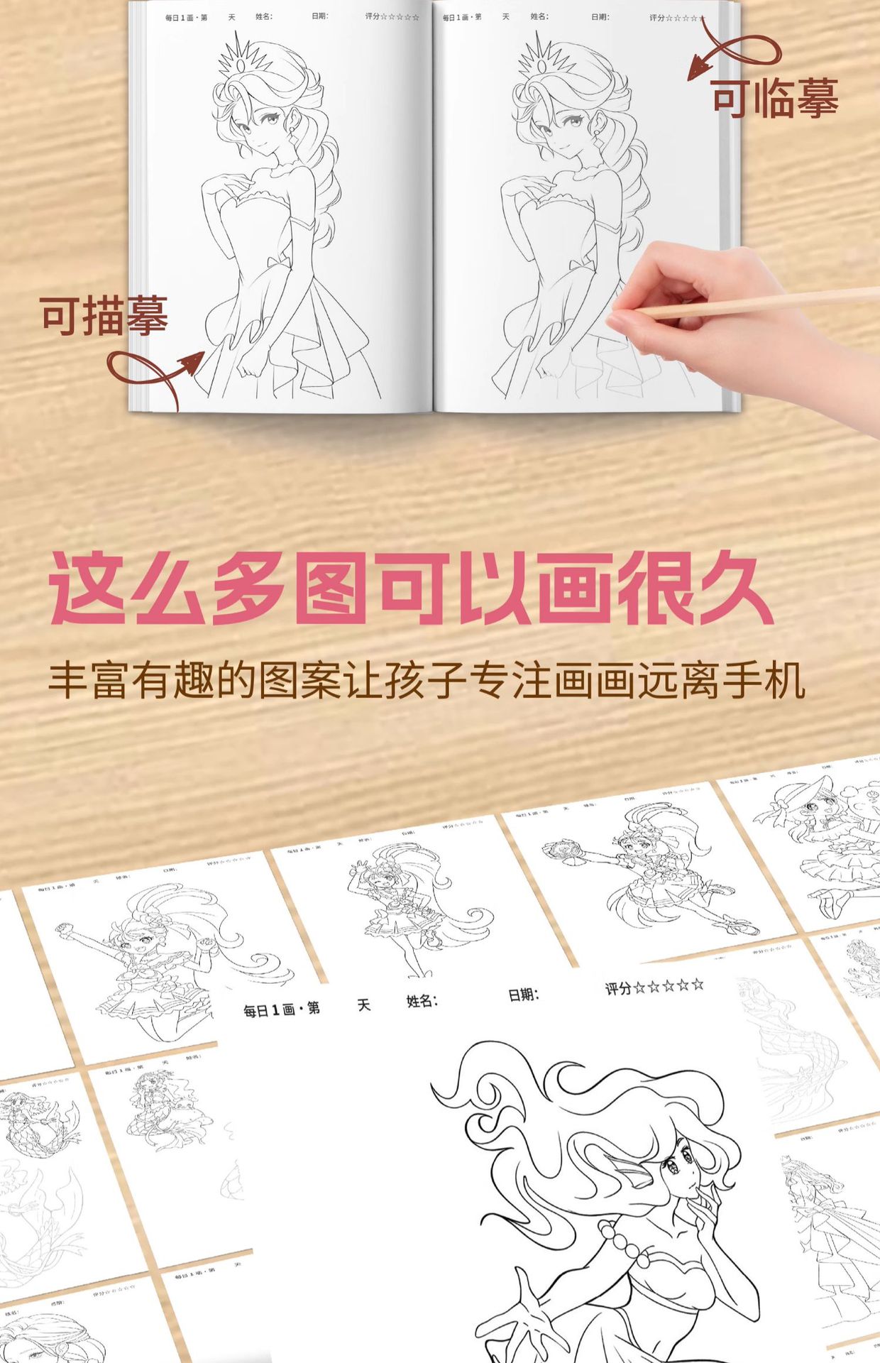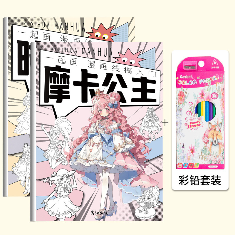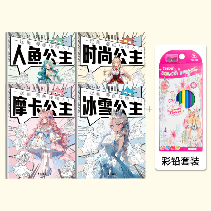 어린이 만화 손으로 그린 선 그리기 책 그리기 책 공주 그림 책 스케치 책 소녀 아름다움