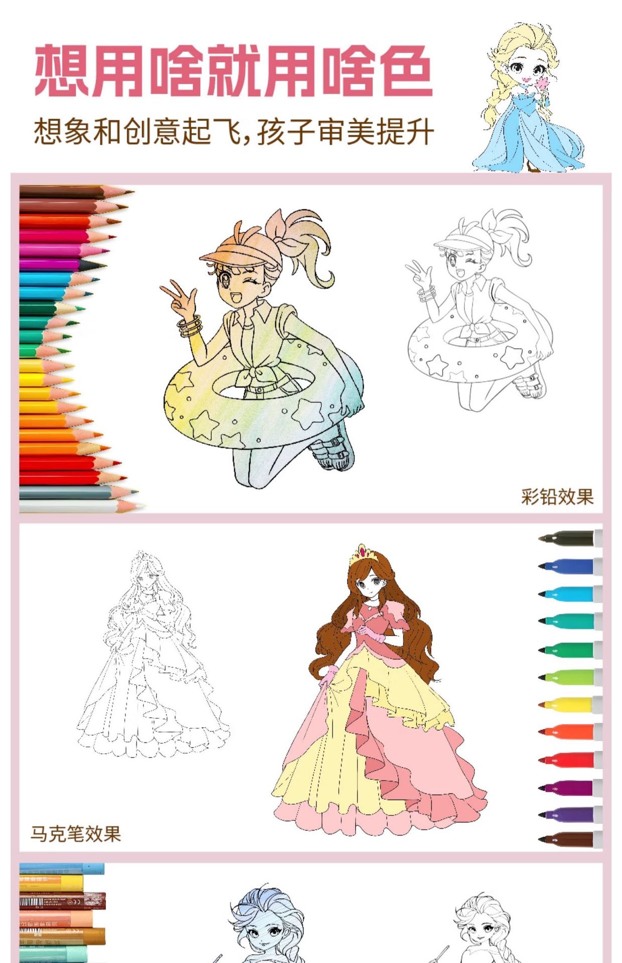 • 얼음과 눈의 공주 + 패션 공주 + 색연필 세트