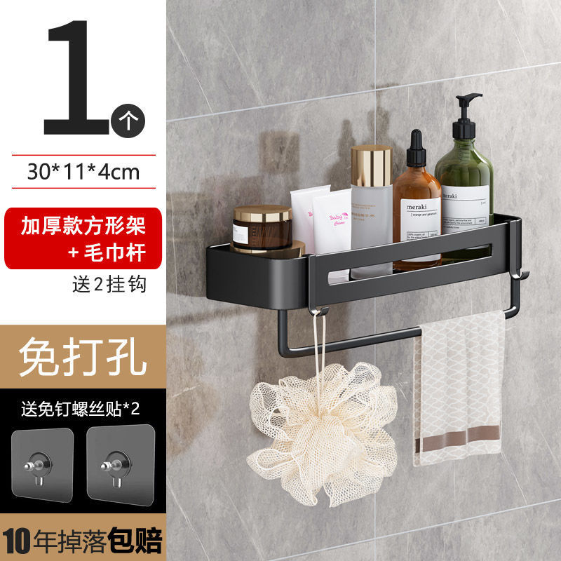 • 특대형 사각 선반 [1개입] + 수건걸이 - 특대형 [무타공] 스테인리스 스틸 분체 도장 마감✦⚑