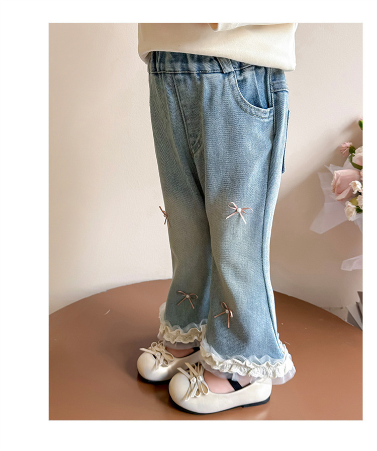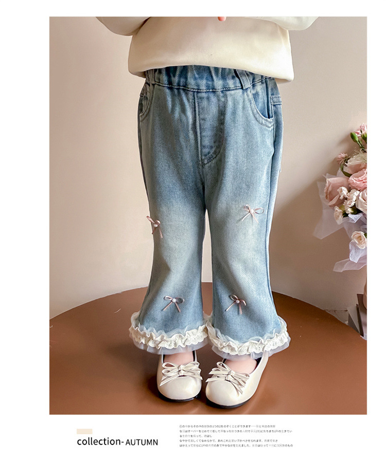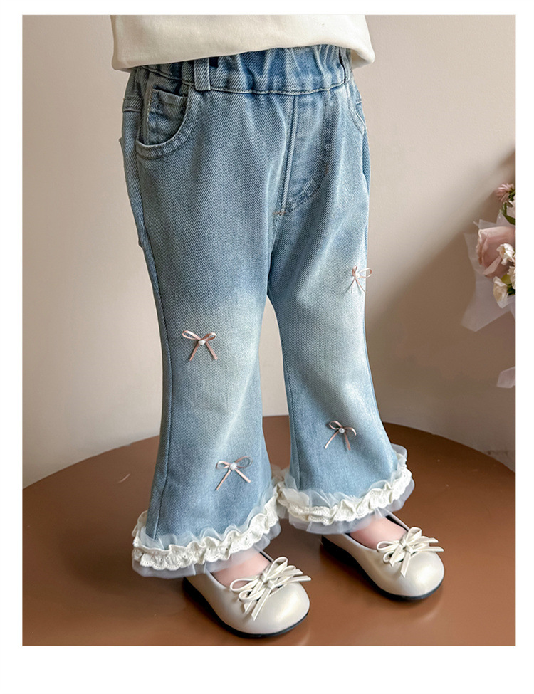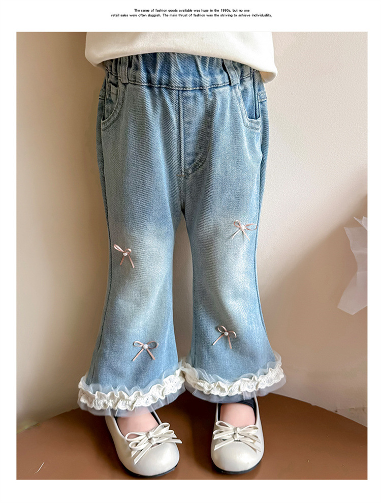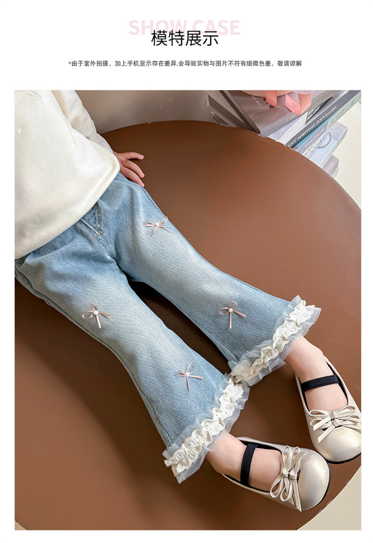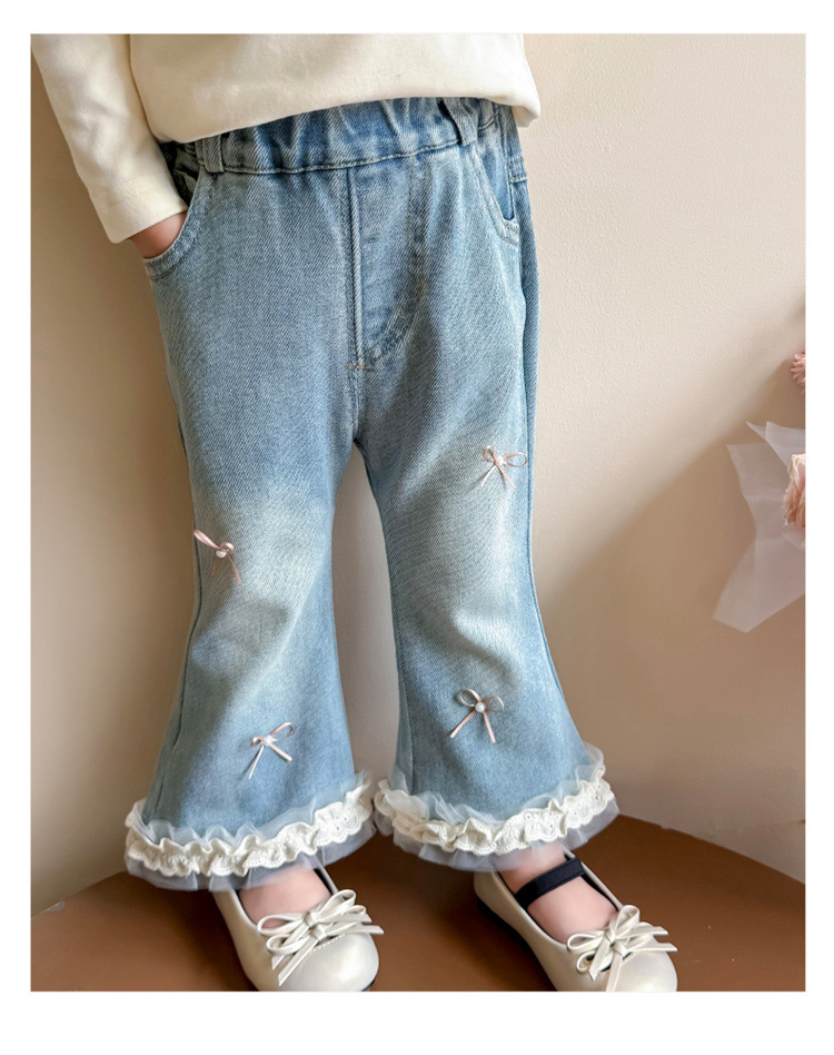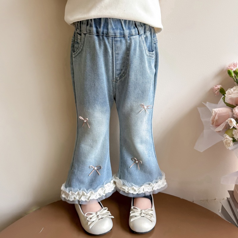 소녀 리본 활 청바지 봄과 가을 2025 새로운 패션 소녀 서양식 캐주얼 플레어 바지스토어 가기