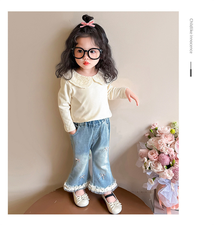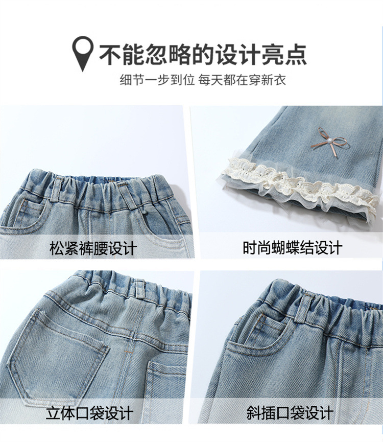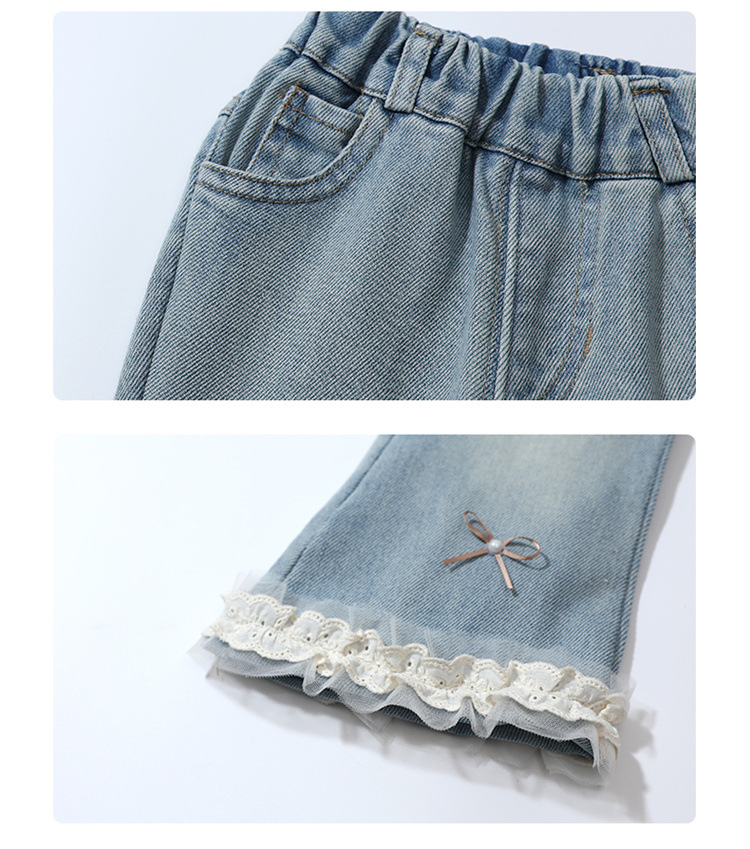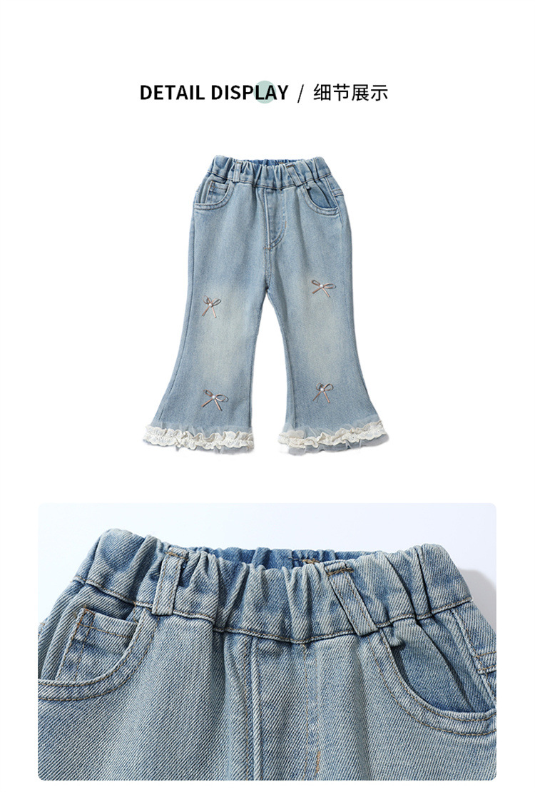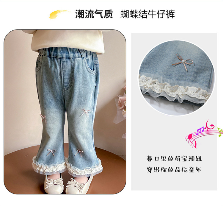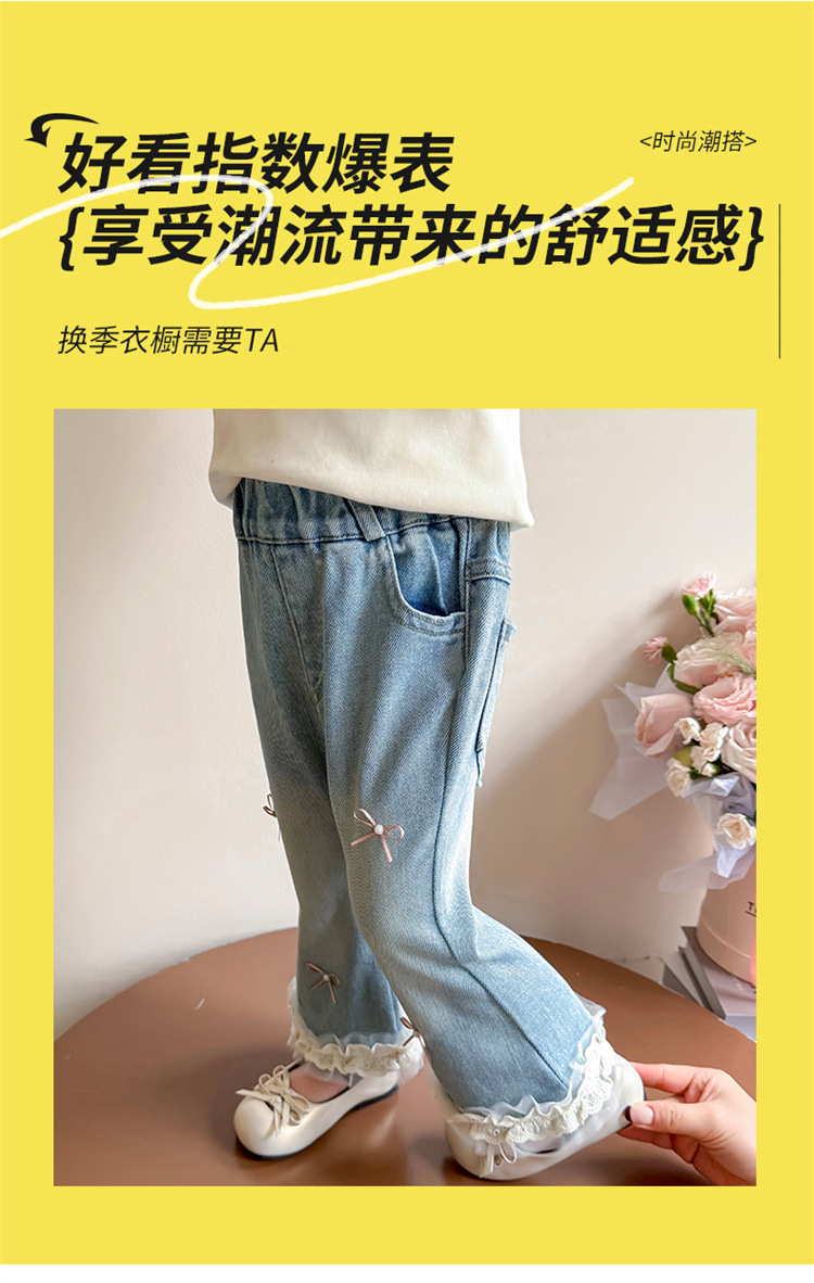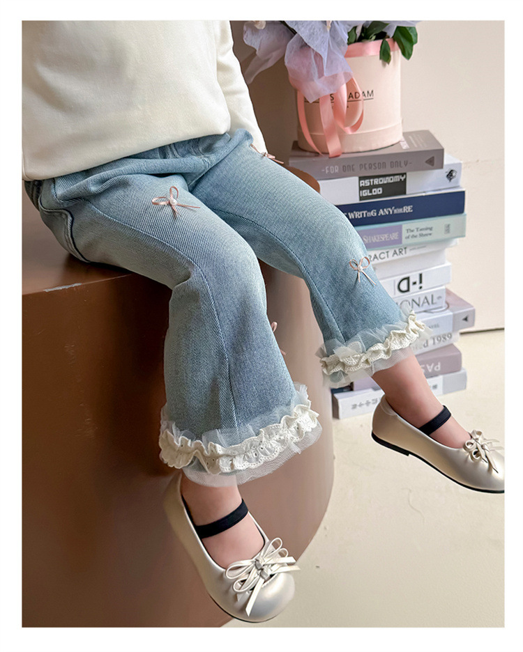소녀 리본 활 청바지 봄과 가을 2025 새로운 패션 소녀 서양식 캐주얼 플레어 바지스토어 가기
