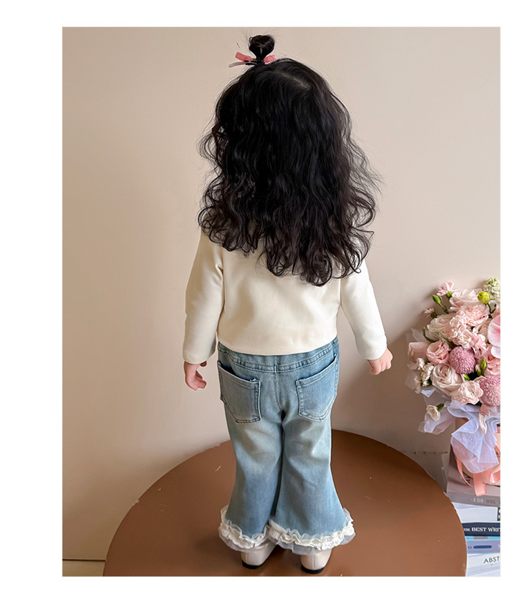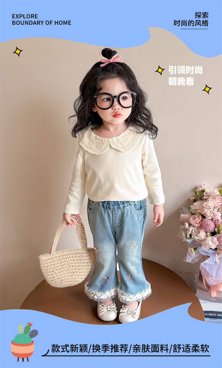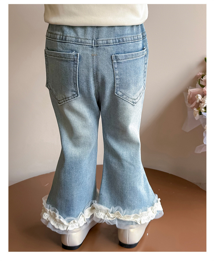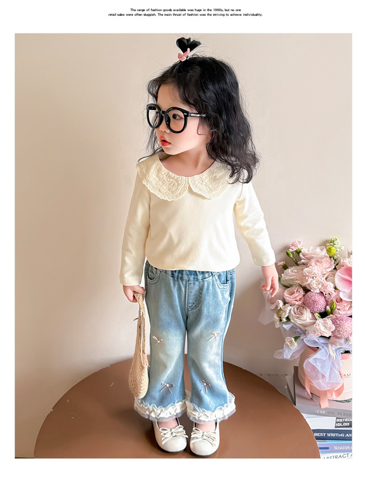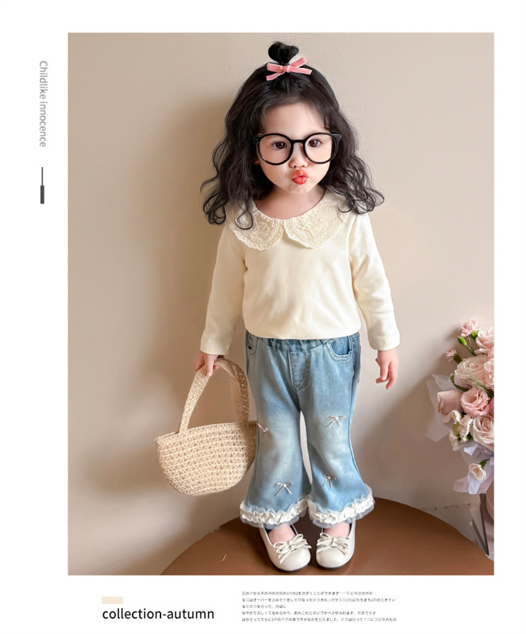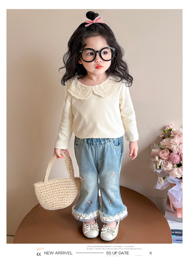 소녀 리본 활 청바지 봄과 가을 2025 새로운 패션 소녀 서양식 캐주얼 플레어 바지스토어 가기