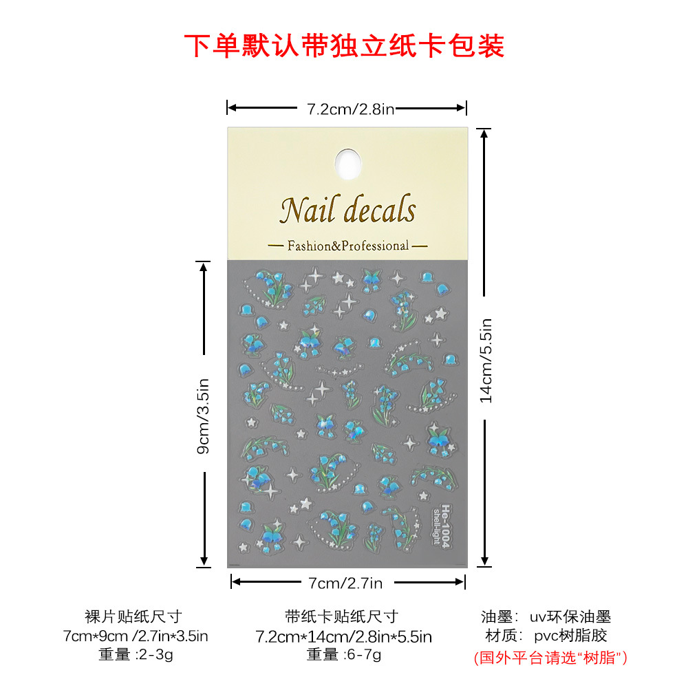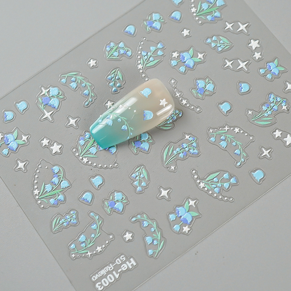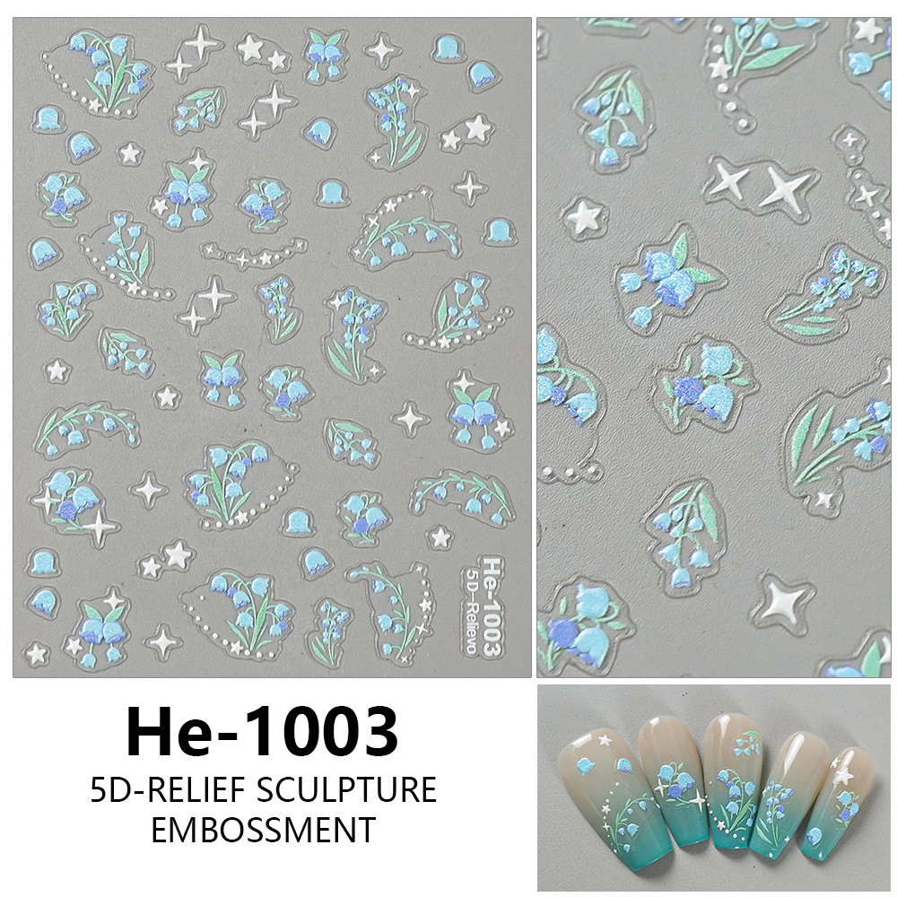 Redanco 새로운 5D 릴리프 폭발 백합 밸리 쉘 라이트 네일 스티커 3 차원 접착 네일 스티커 He-1004