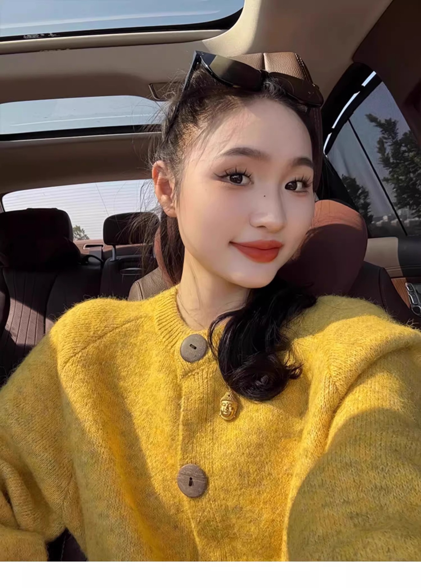 프렌치 레트로 옐로우 너구리 벨벳 카디건 스웨터 재킷 여성용 느슨한 게으른 스타일 아우터 니트 탑 봄과 가을스토어 가기