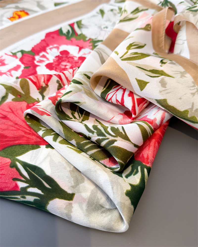 한국식 얇은 인쇄 시뮬레이션 실키 브로케이드 선스크린 다채로운 꽃 스카프 긴 스카프 목도리 올 매치 헤드 스카프 스카프스토어 가기