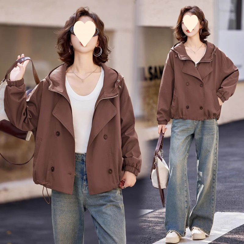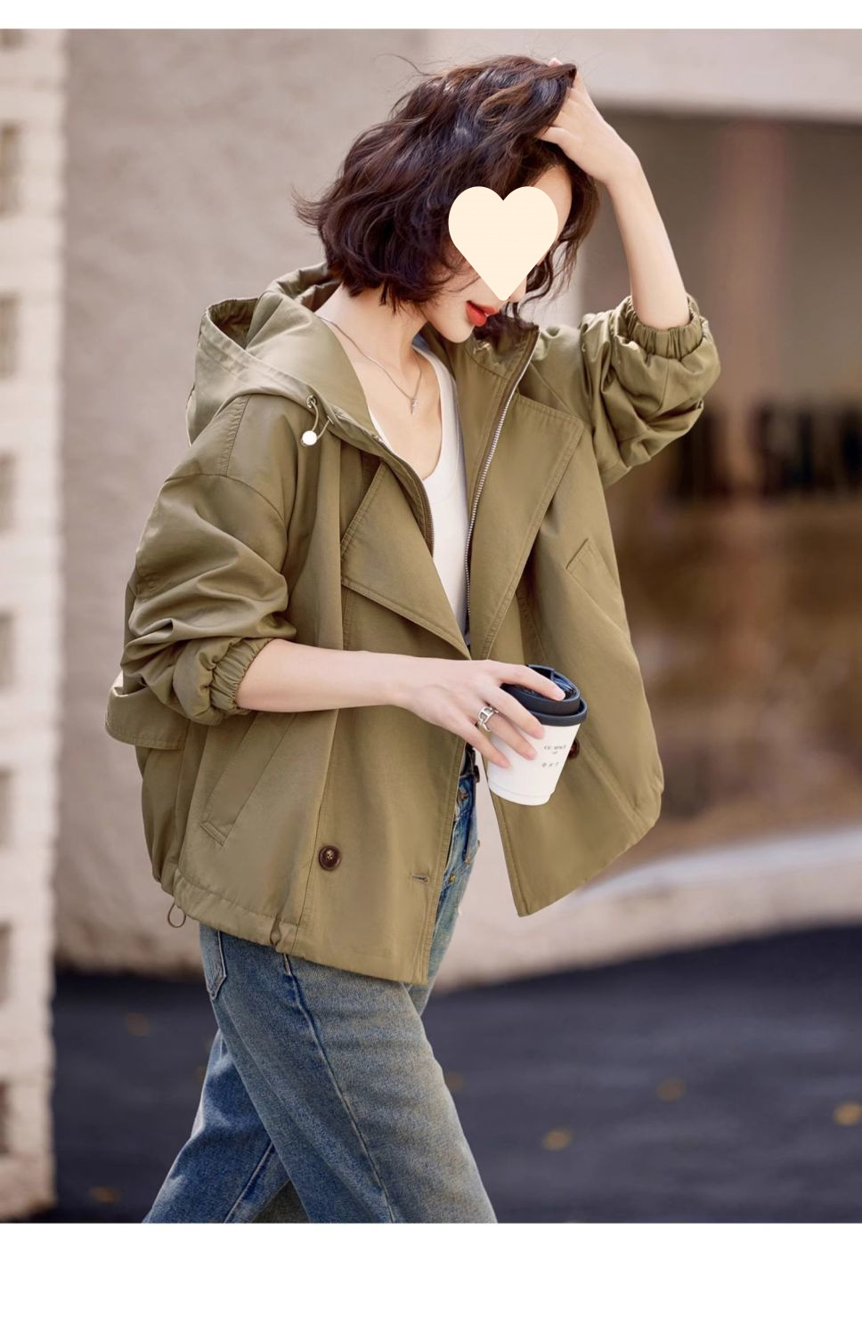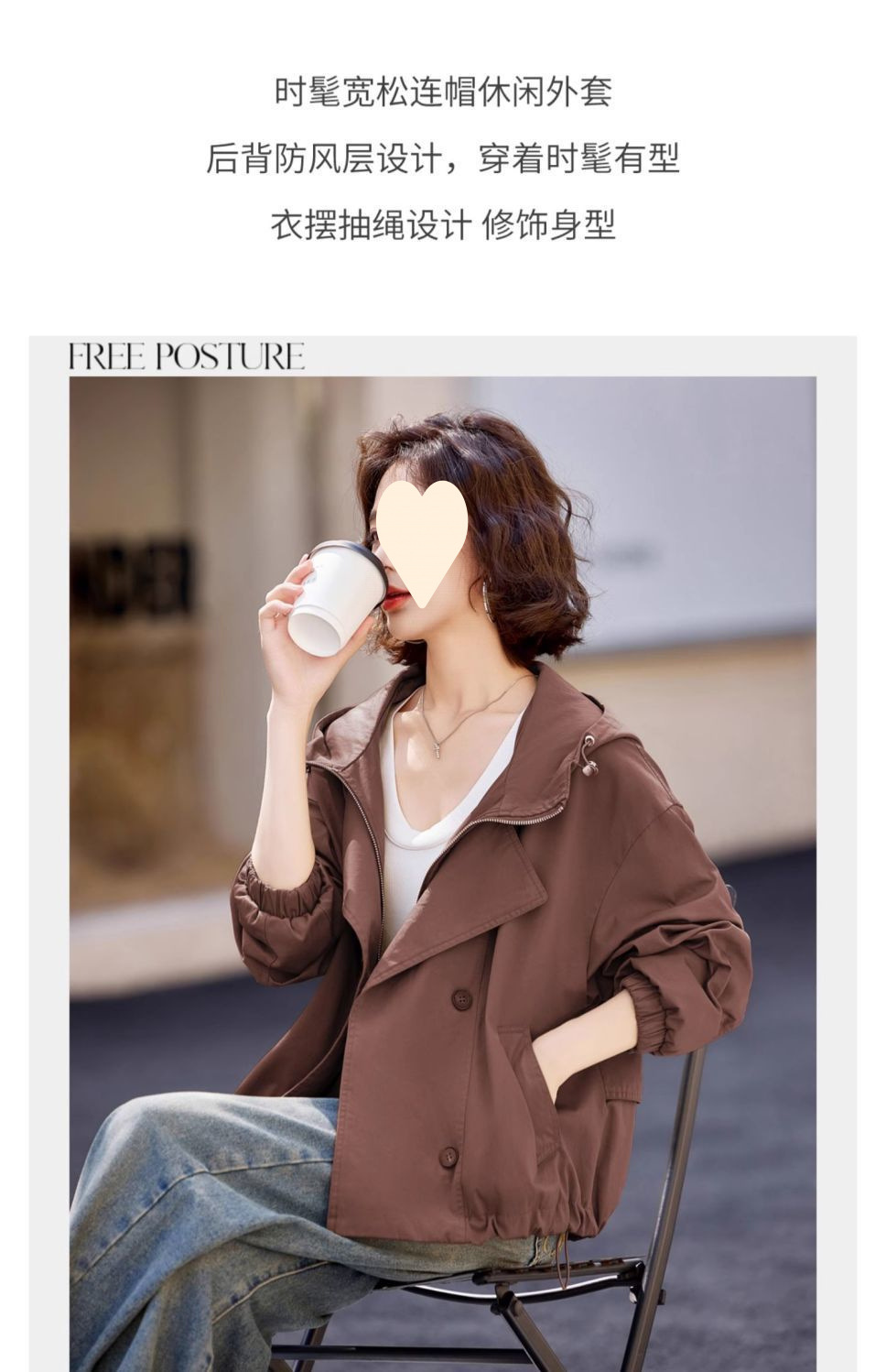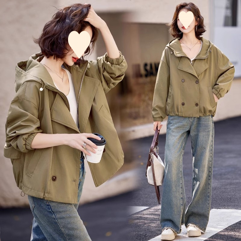 잘 생긴 짧은 트렌치 코트 여성의 짧은 패션 디자인 감각 2025 봄과 가을 새로운 캐주얼 후드 코트 조수스토어 가기