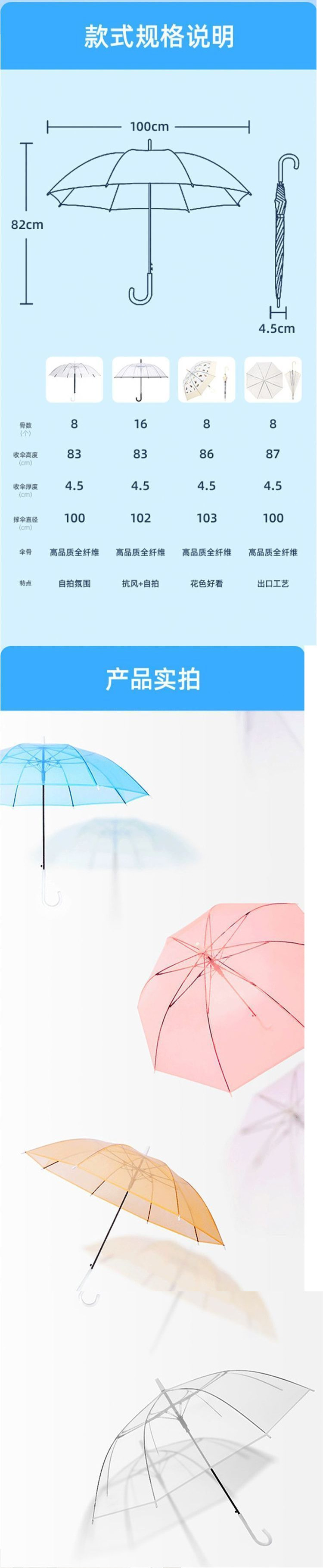 맑은 우산 긴 손잡이 우산 16-뼈 투명 우산 대형 더블 여성 화이트 인터넷 붉은 태양 우산 초대형 우산 핫 세일