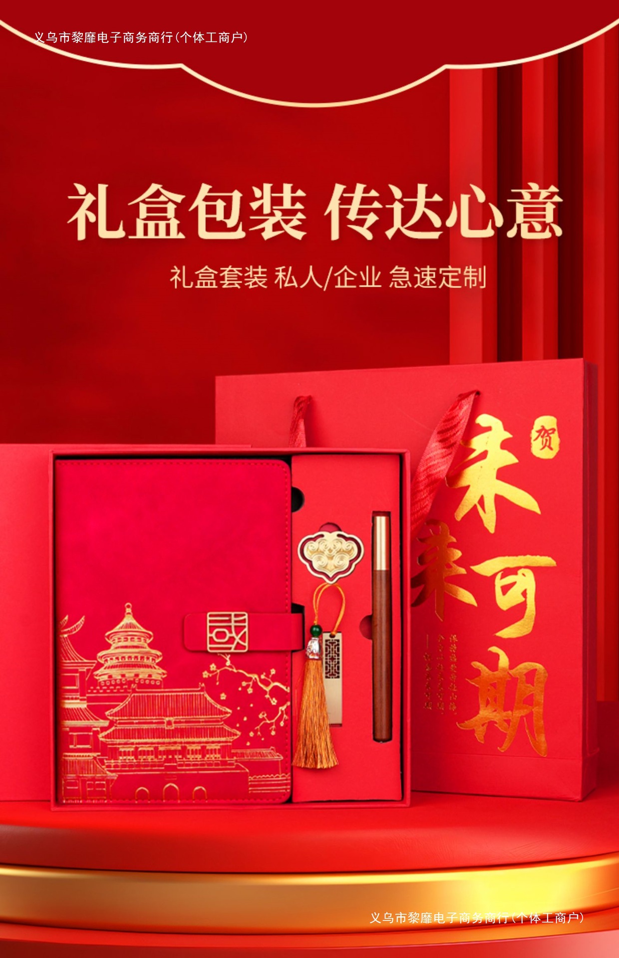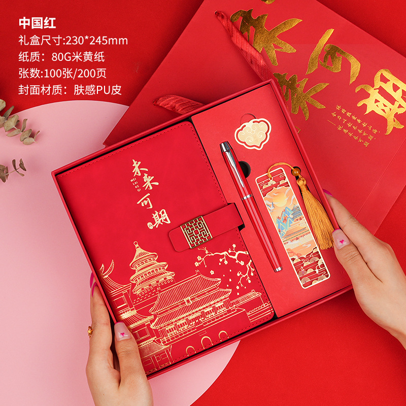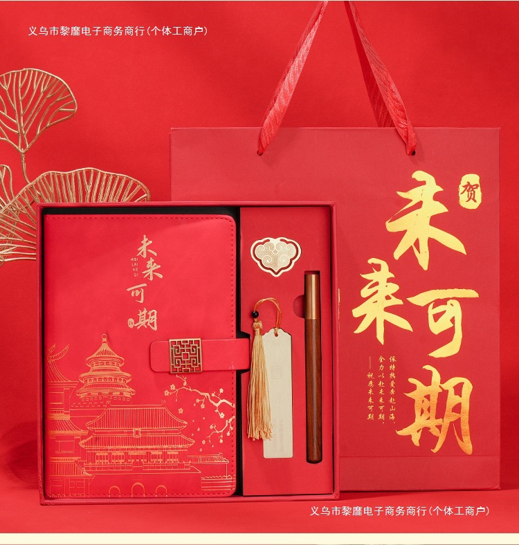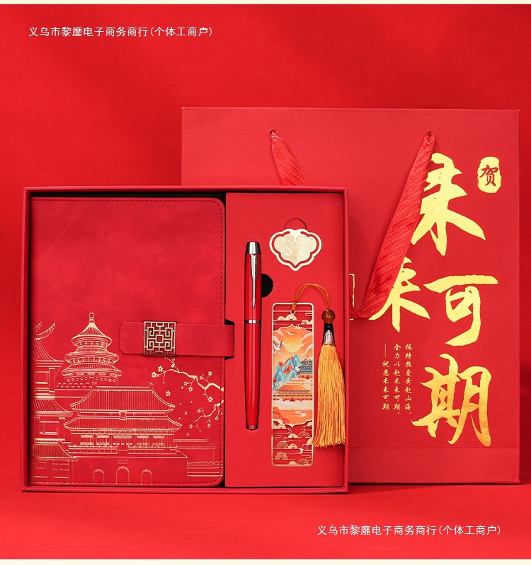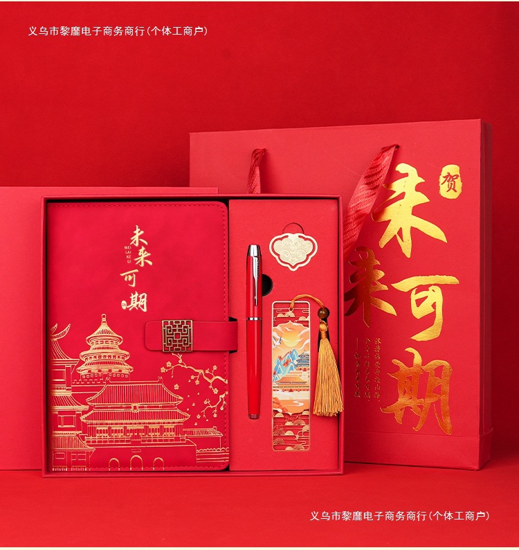 • 미래는 유망합니다 [명품 4종 세트 + 선물가방] 중국 붉은 양 벤 + 금속 펜 + 중국식 책갈피 + 책꽂이