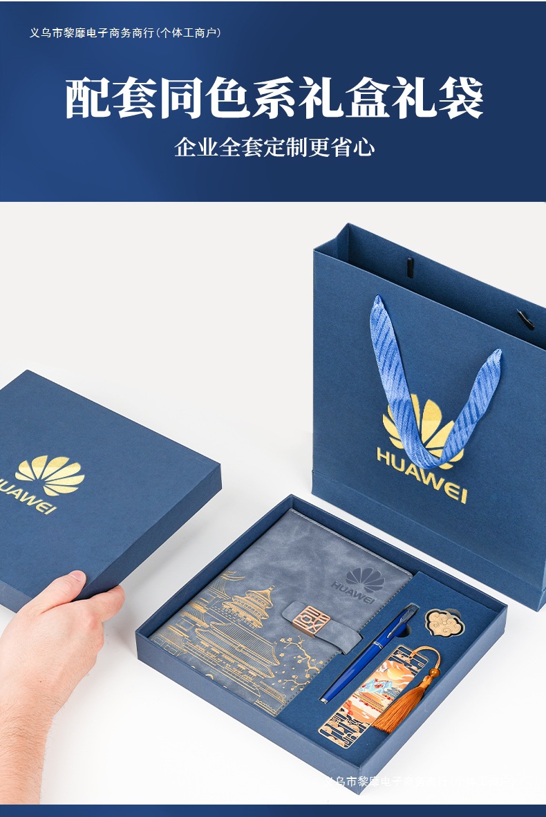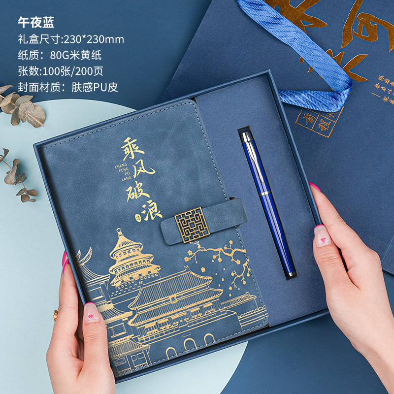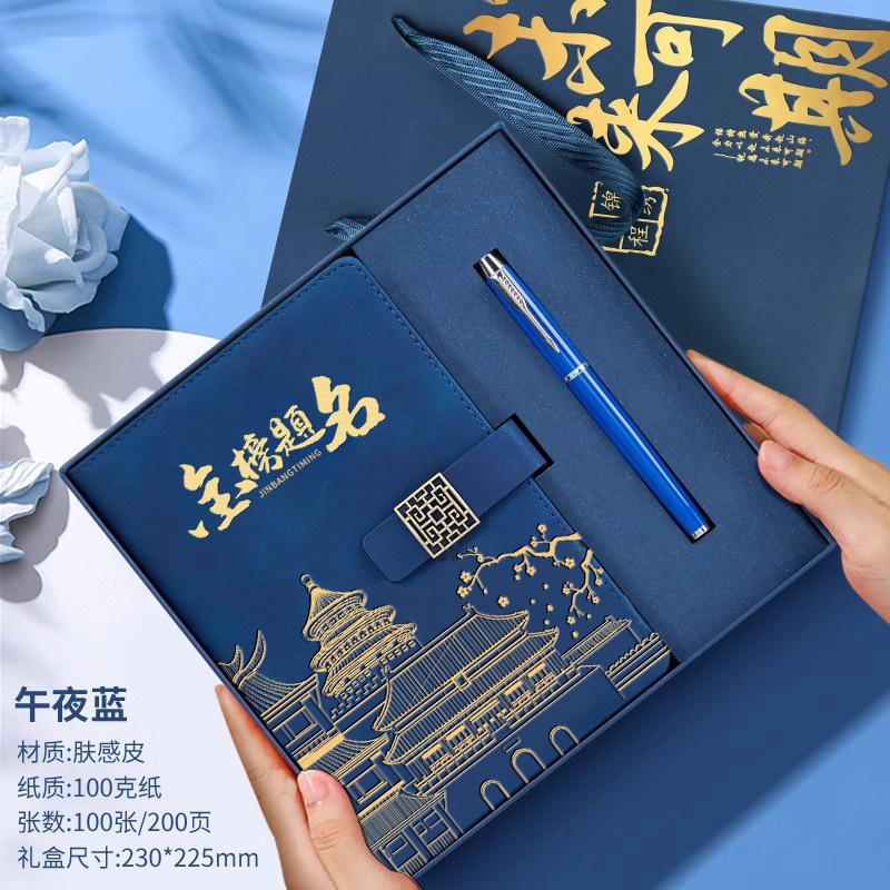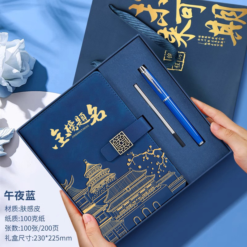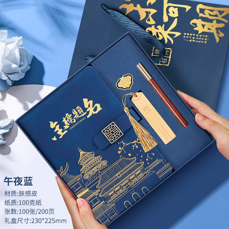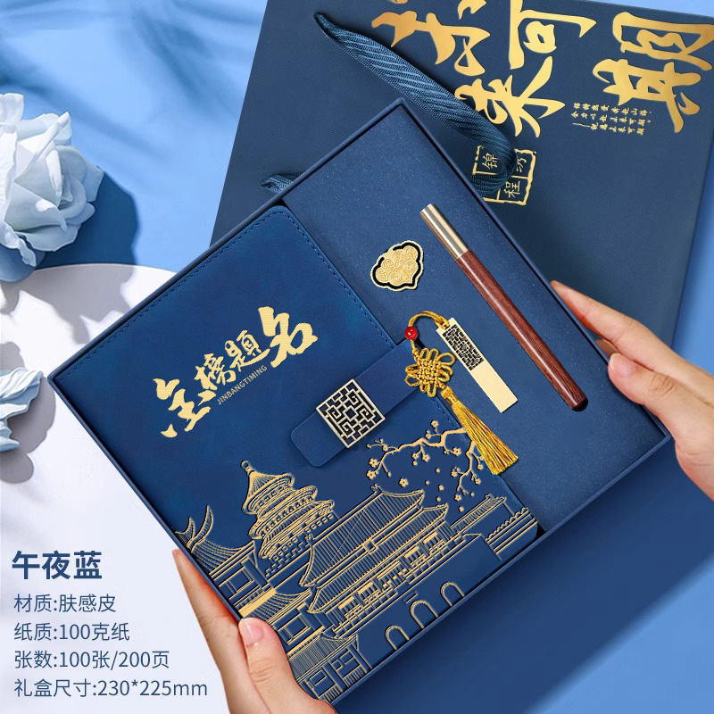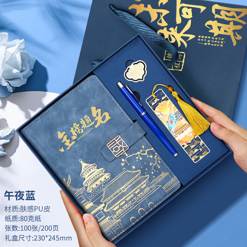• 골드리스트 제목 [국차오 명품 4종 세트 선물가방] 남색 한자 버클 + 금속 펜 + 국차오 책갈피 + 책꽂이