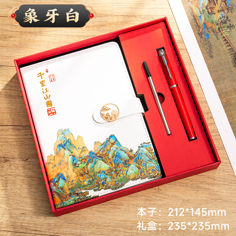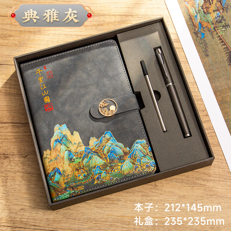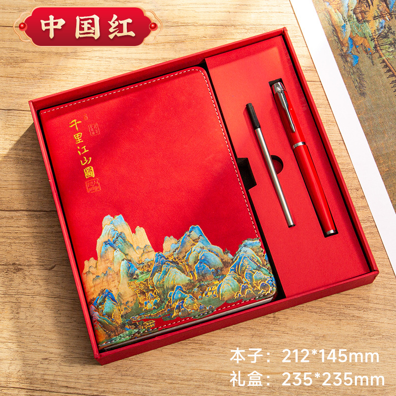 • [선물 상자] 중국 빨간색 A5 상서로운 구름 버클 - 수천 마일의 강과 산 그림 (가로선 + 격자 + 공백)