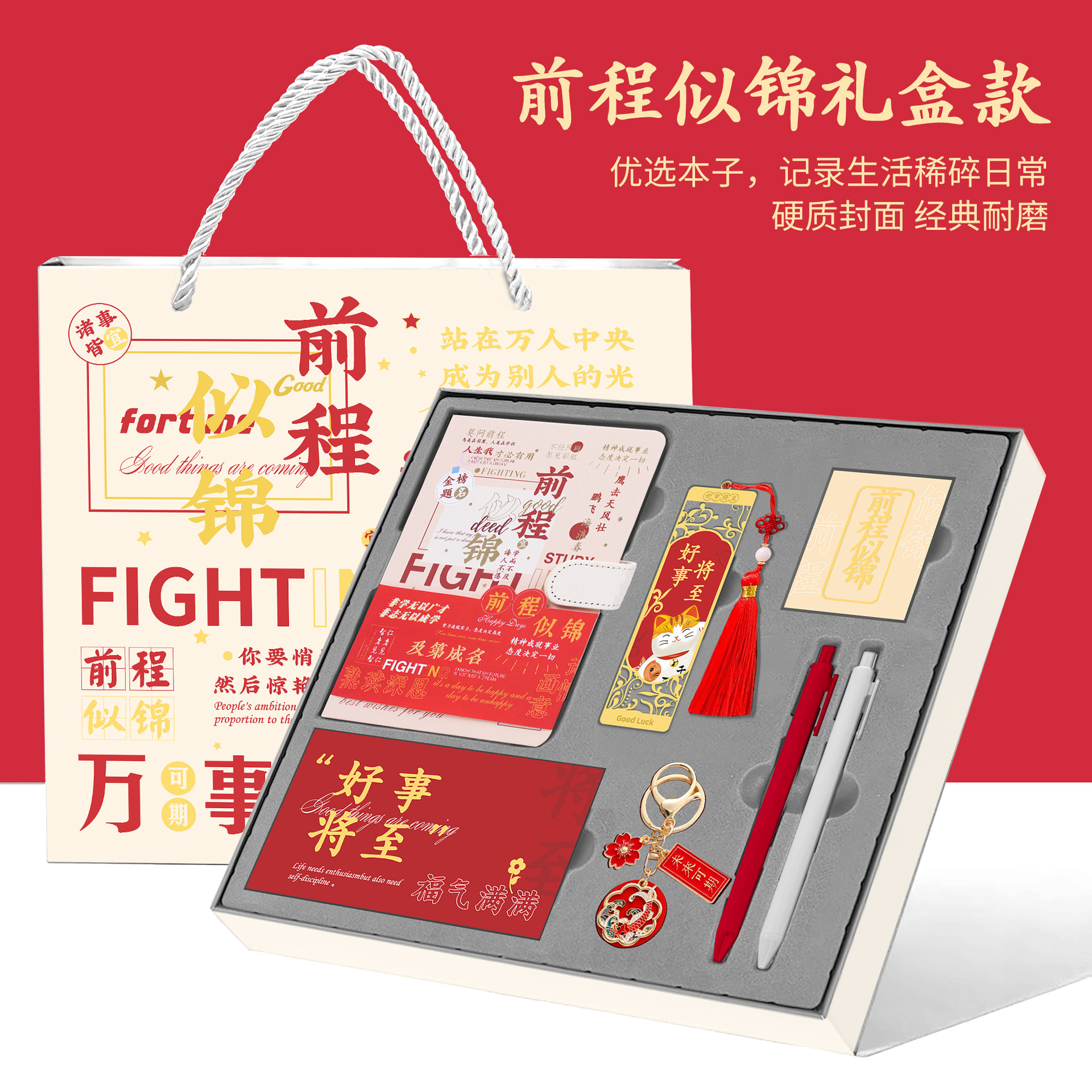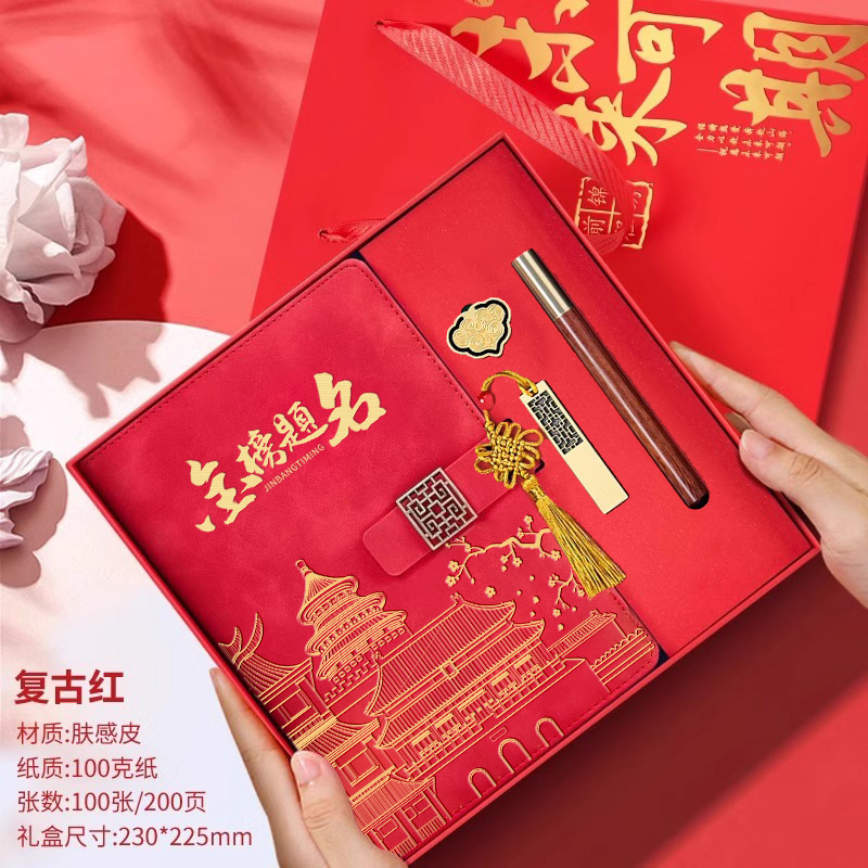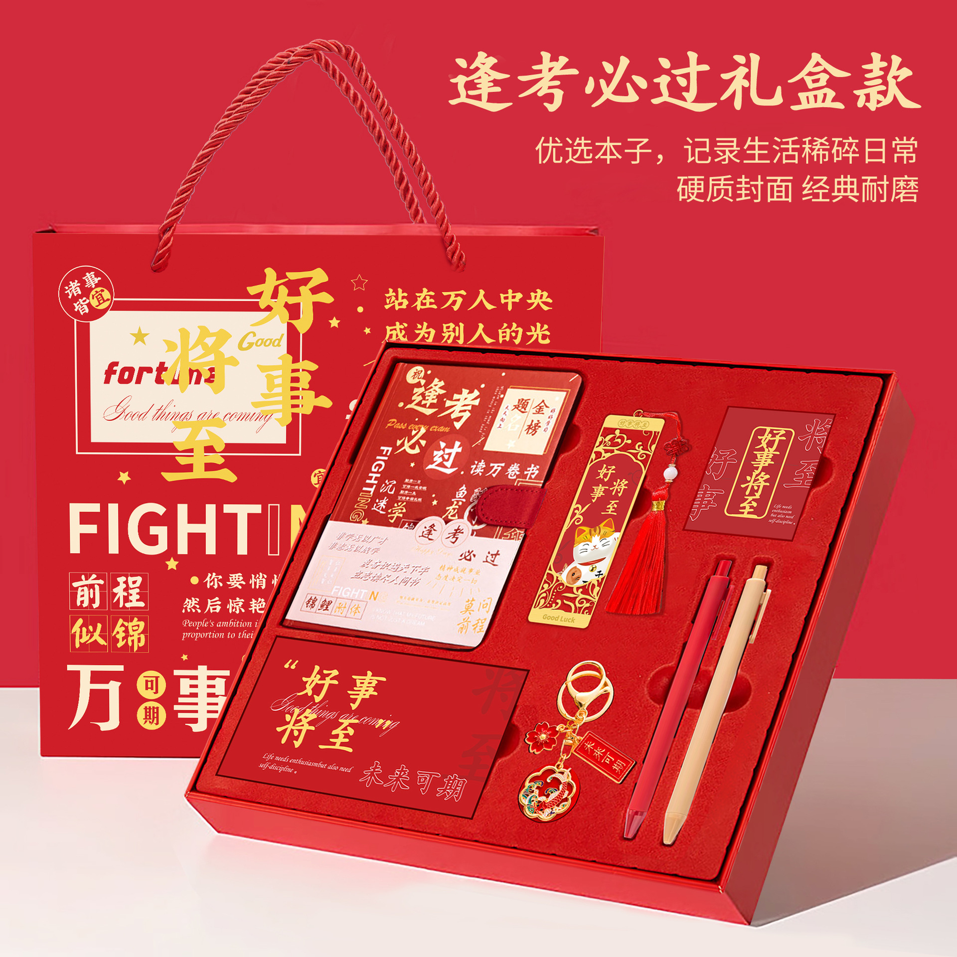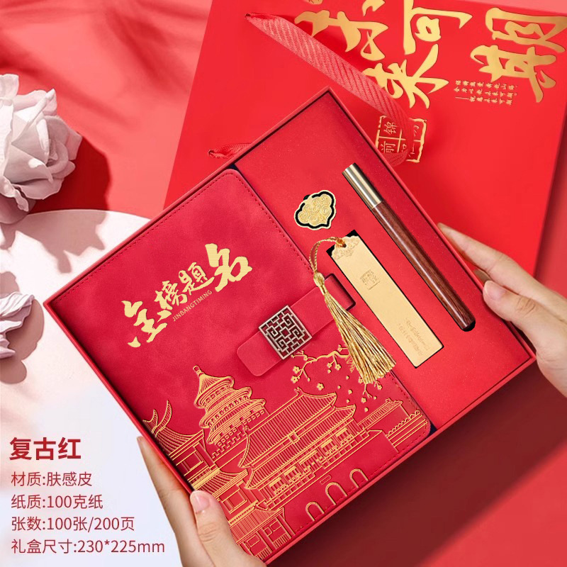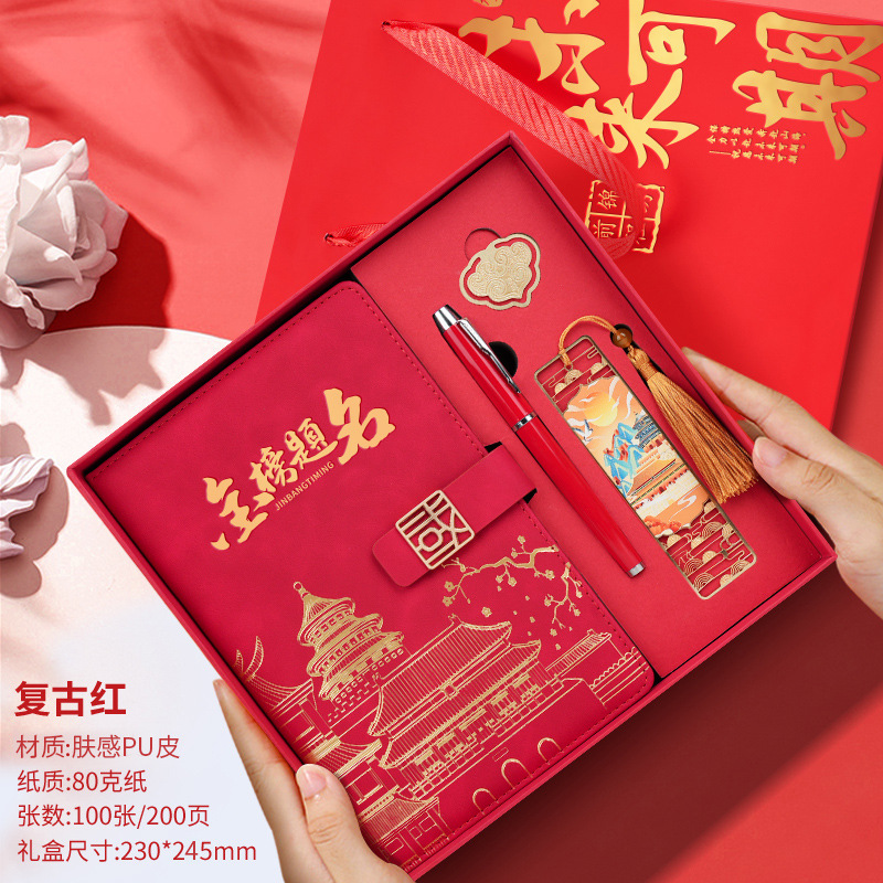 • [모든 시험에 합격해야 함] 빨간색 선물 상자 - 노트 + 책갈피 + 책꽂이 + 열쇠고리 + 펜 2개 + 축하 카드 + 선물 가방