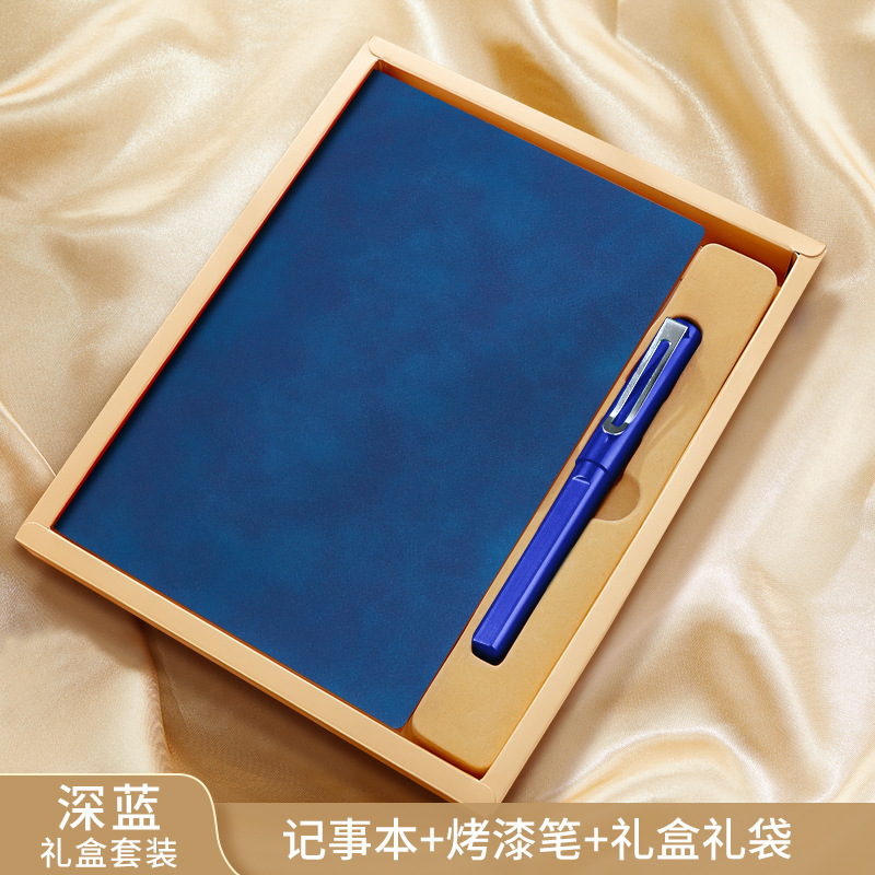 • 골드리스트 제목 [국차오 클래식 투피스 세트 선물 가방] 진한 파란색 창 그릴 버튼 + 금속 펜