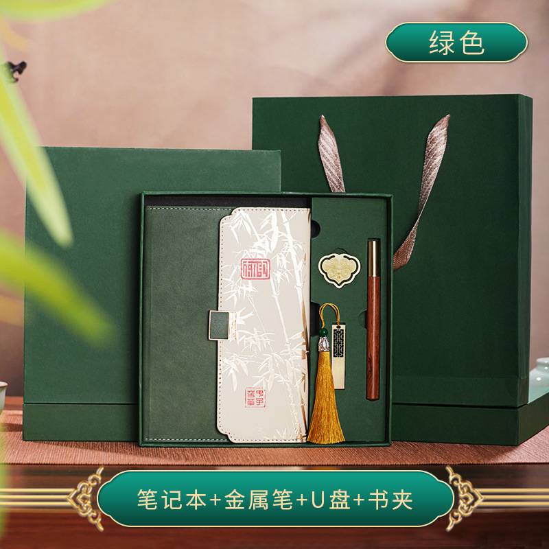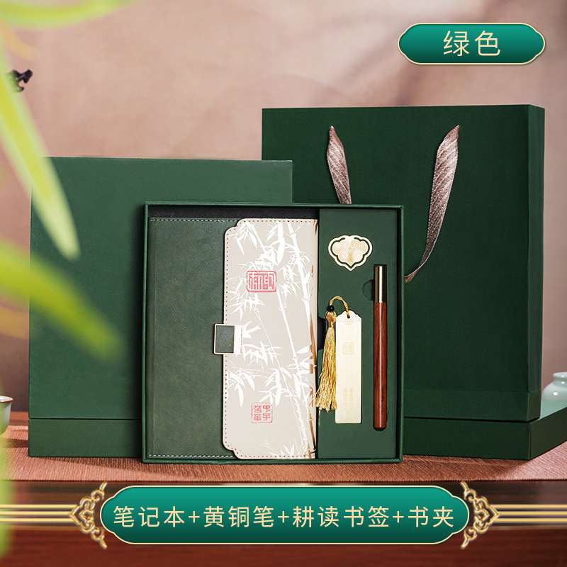 • 말차 그린 [전용 4종 세트] 대나무 운율 사각 버클 70% off 권 + U 디스크 + 황동 펜 + 책 클립