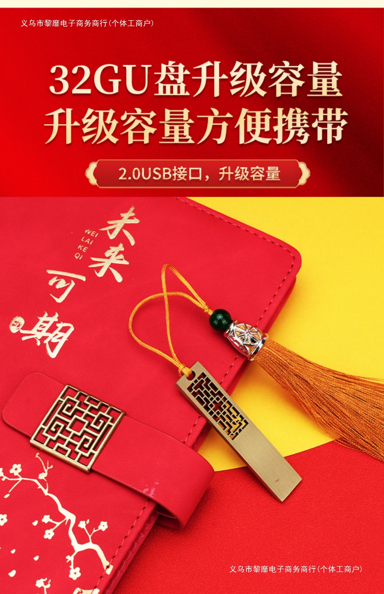 • 미래는 유망합니다 [국차오 전용 4종 세트 + 선물가방] 중국 붉은 창 꽃단추 + 황동 펜 + 32g U 디스크 + 북클립