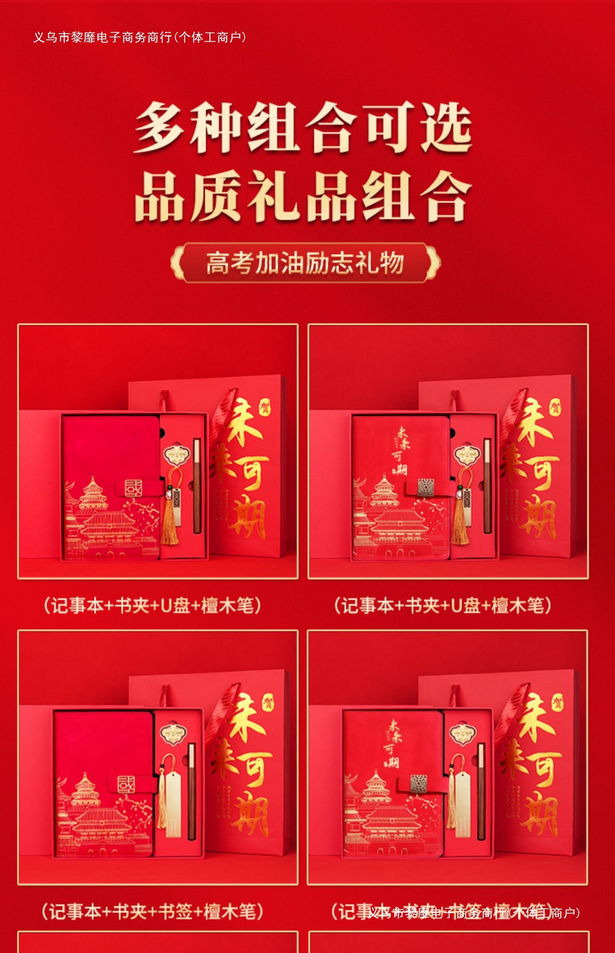 • 골드리스트 제목 [국차오 전용 4종 선물가방] 빨간색 창 그릴 버클 + 황동 펜 + 32g U 디스크 + 북 클립