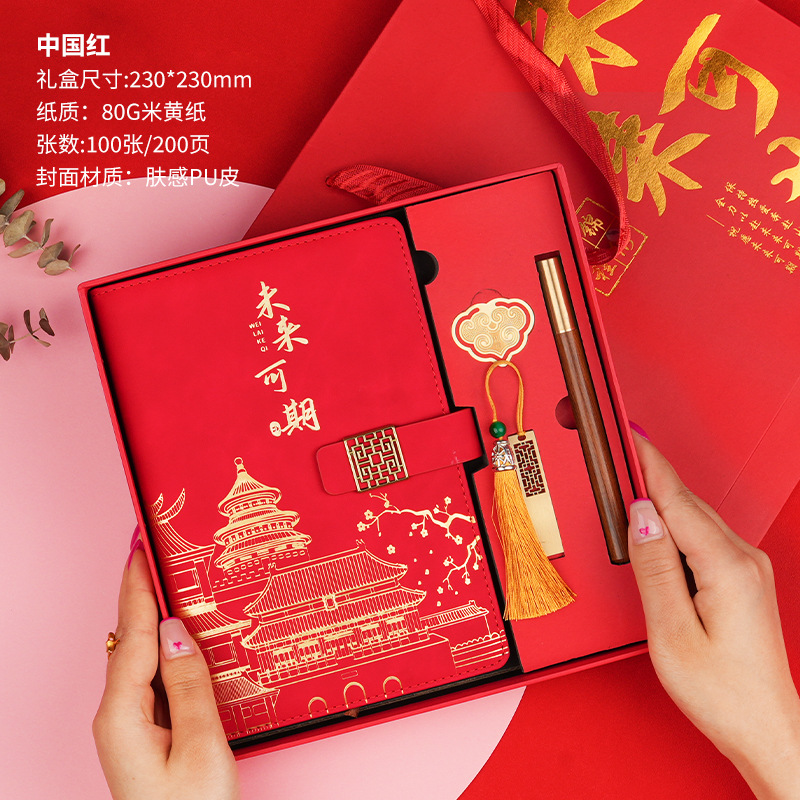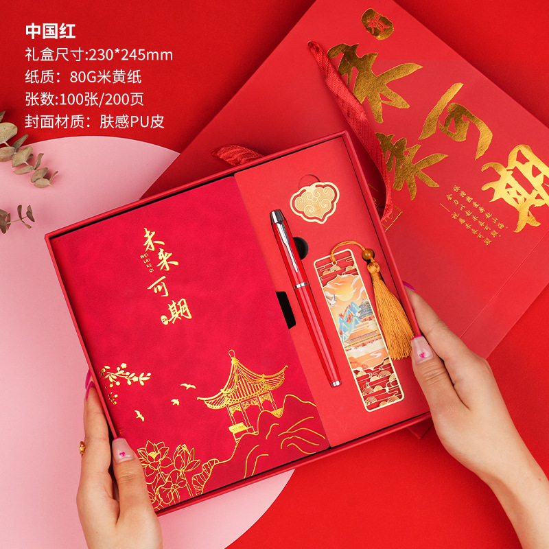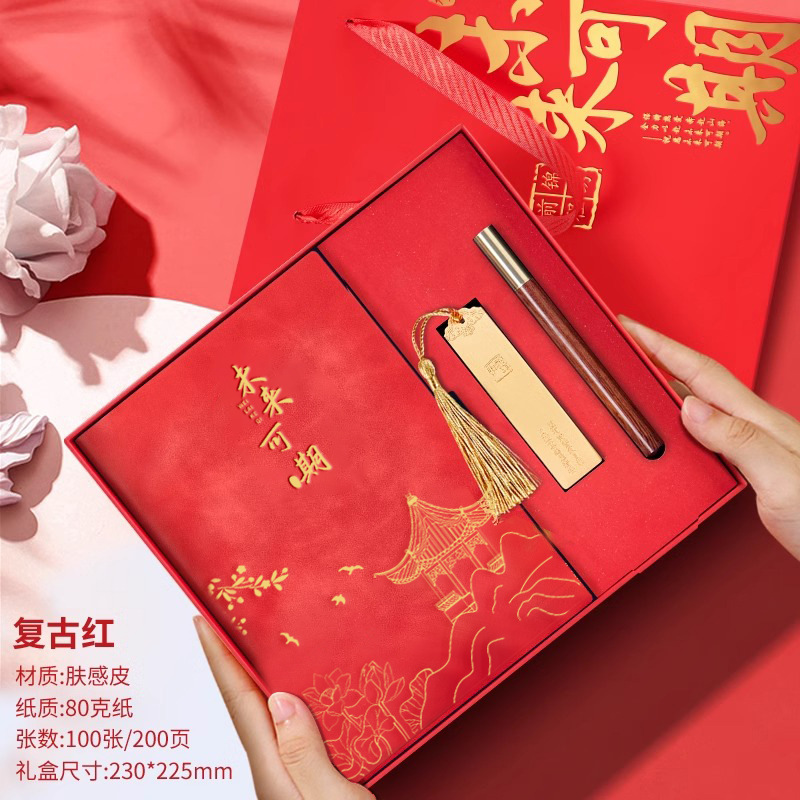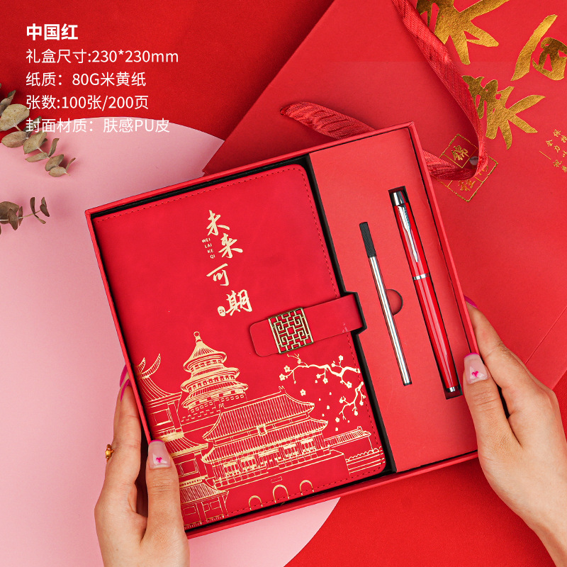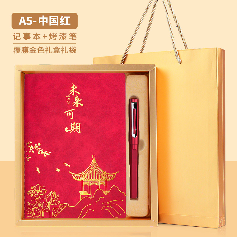• 미래는 유망합니다 [클래식 투피스 세트 선물가방] 중국 붉은 양 벤 + 금속 펜