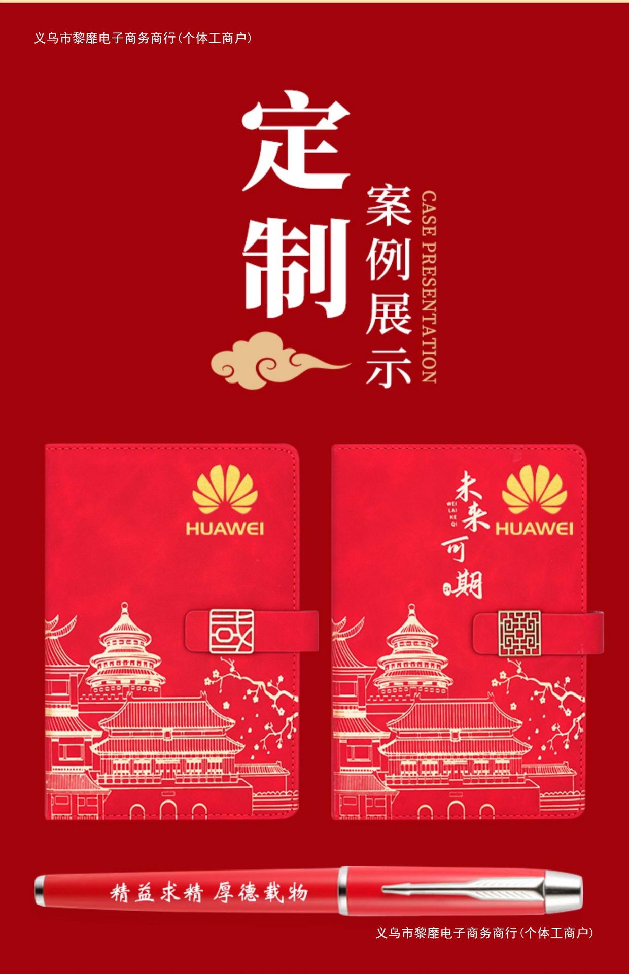 • 미래는 유망합니다 [국차오 업그레이드 3종세트 선물가방] 중국식 붉은 창꽃단추 + 금속펜 + 펜리필