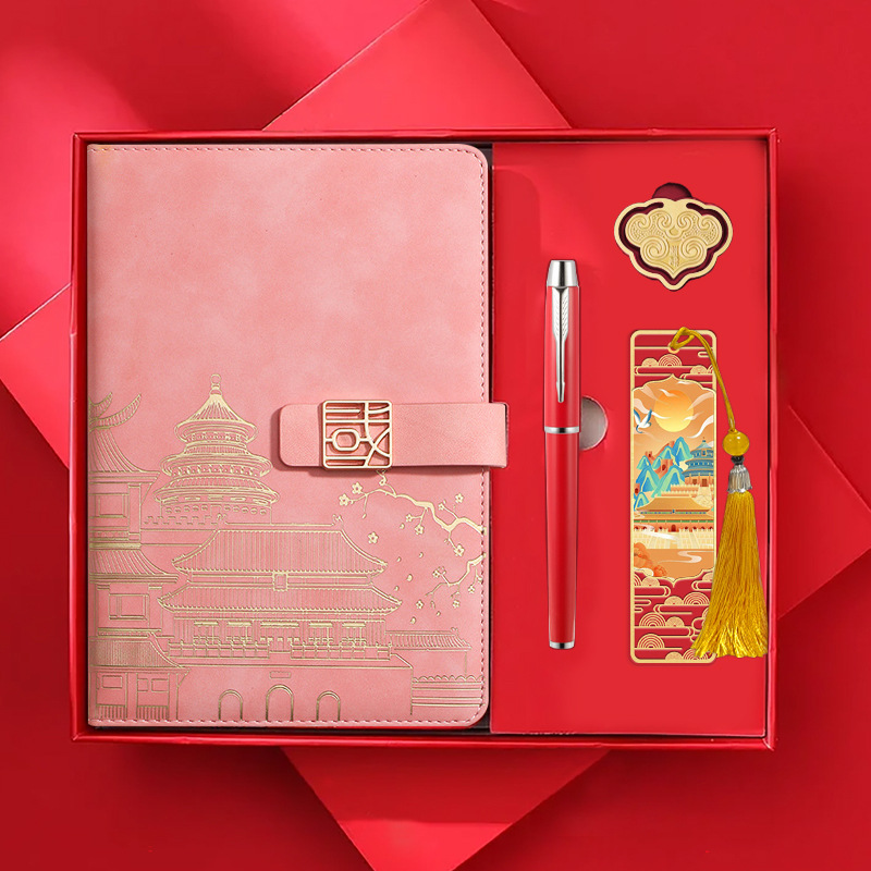 • [국차오 명품 4종 세트 선물가방] 한자 빨간색 버클 + 금속 펜 + 국차오 책갈피 + 책꽂이