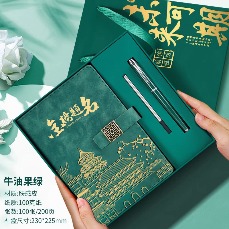 • 골드리스트 제목 [국차오 업그레이드 3종 세트 선물가방] 짙은 녹색 창 그릴 버클 + 금속 펜 + 펜 리필
