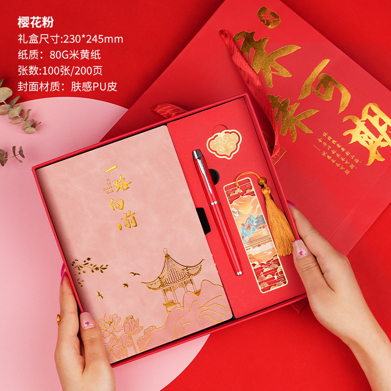 • 앞으로 나아가세요 [명품 4종 세트 + 선물가방] 사쿠라 핑크 양바펜 + 메탈 펜 + 중국식 책갈피 + 북클립