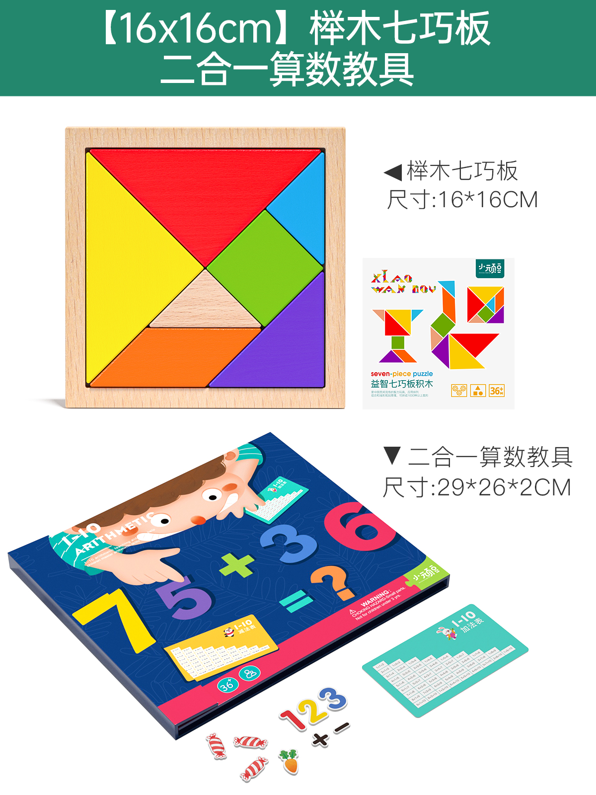 • 【16x16cm】너도밤나무 칠교놀이 + 투인원 산수 교구
