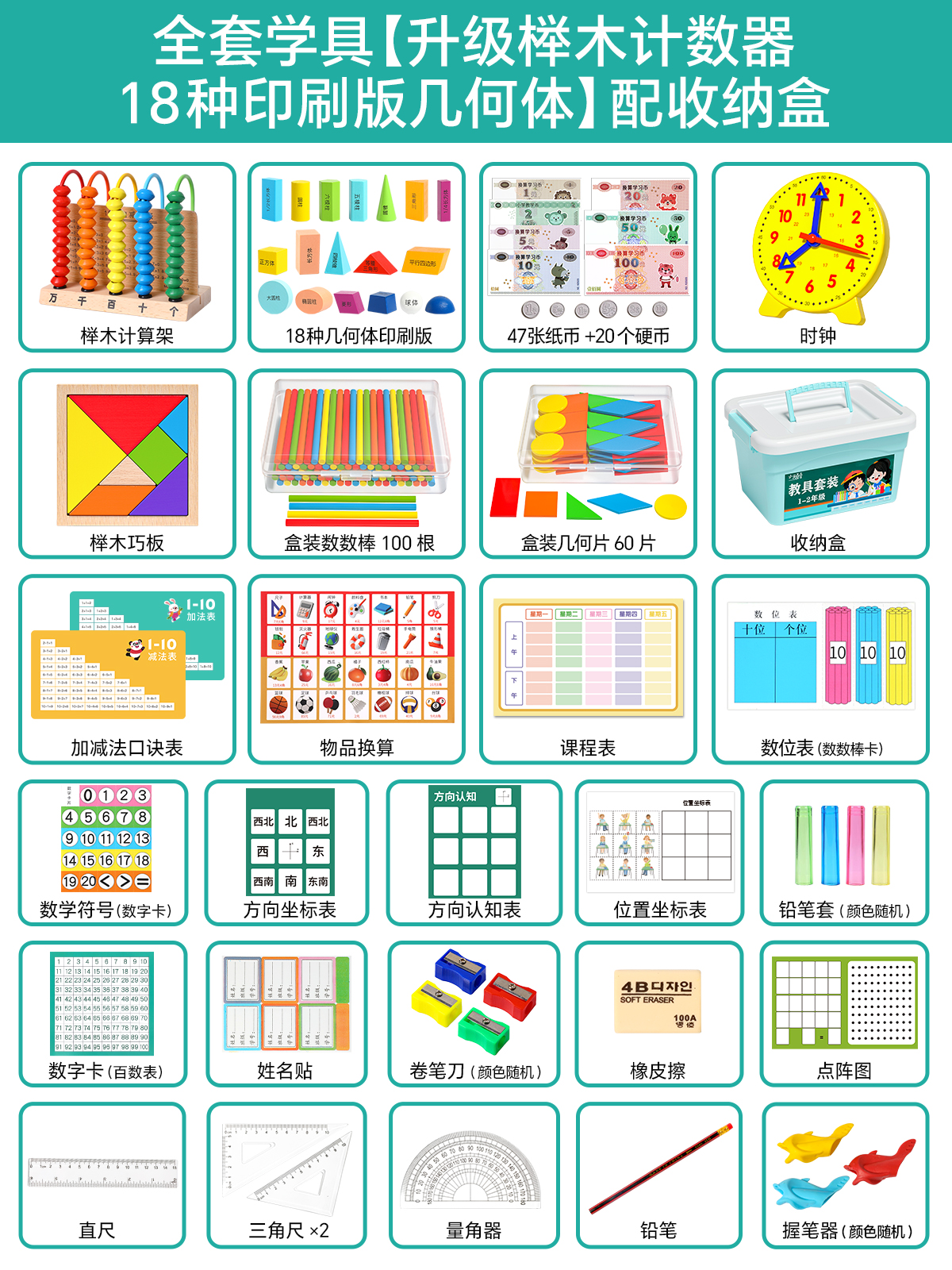 • 보관 상자가 포함된 학습 도구 전체 세트 [업그레이드된 너도밤나무 카운터 + 18가지 유형의 인쇄된 기하학]