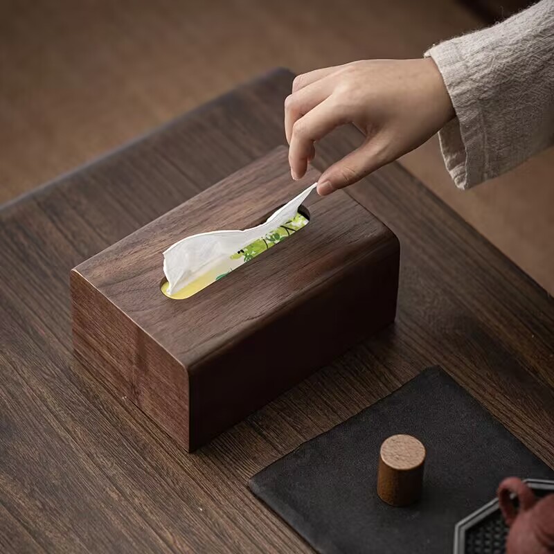 호두 조직 상자 단단한 나무 저장 중국 거실 고급 센스 호텔 블랙 호두 나무 종이 상자 나무스토어 가기