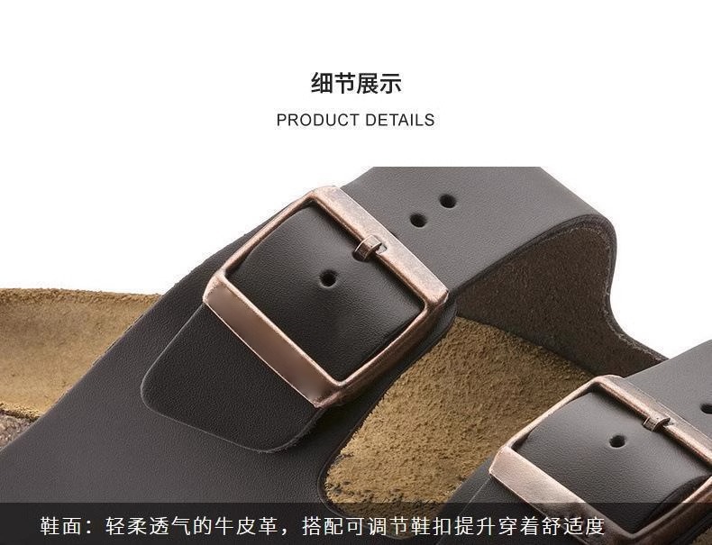 2025 1층 소가죽 경량 플랫 코르크 버켄스탁 신발 캐주얼 패션 다용도 복고풍 가죽 좁은 샌들