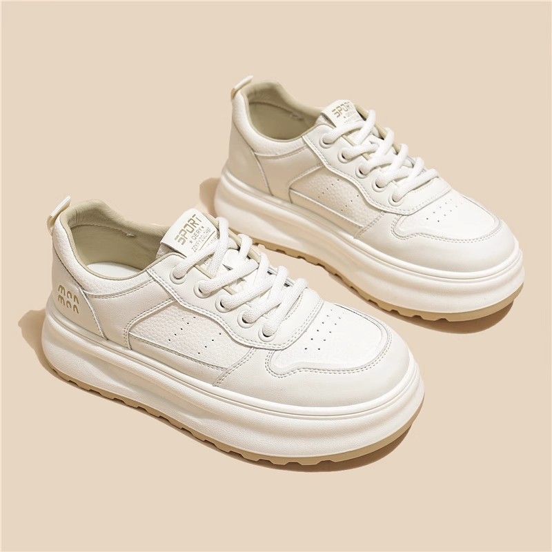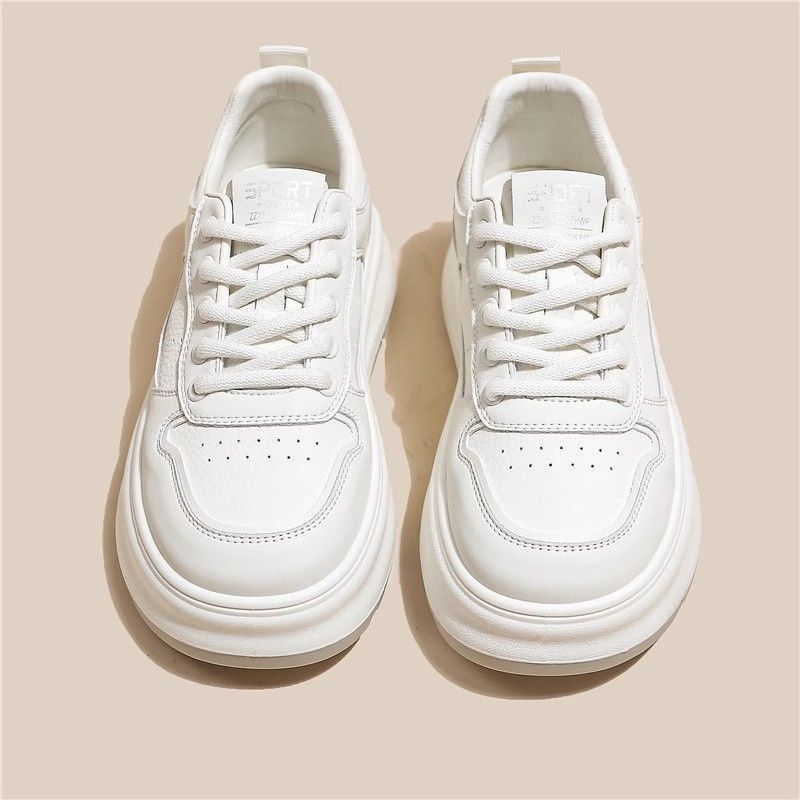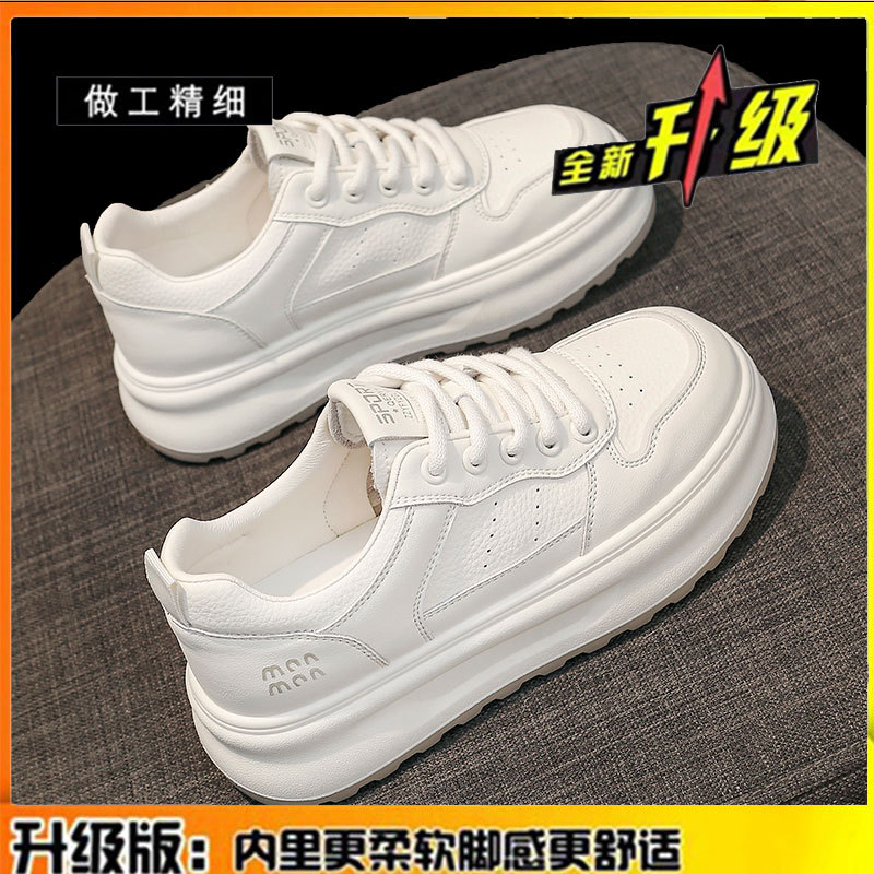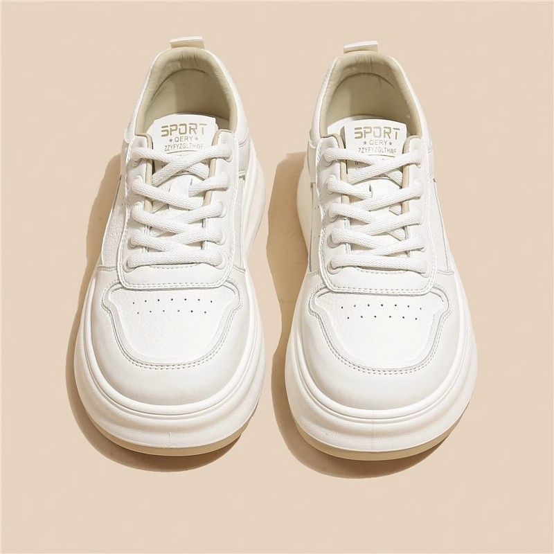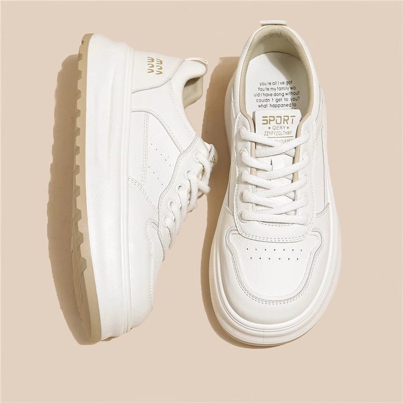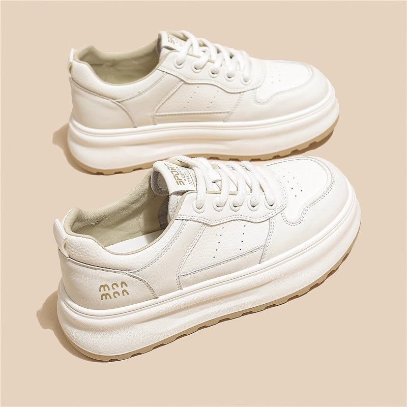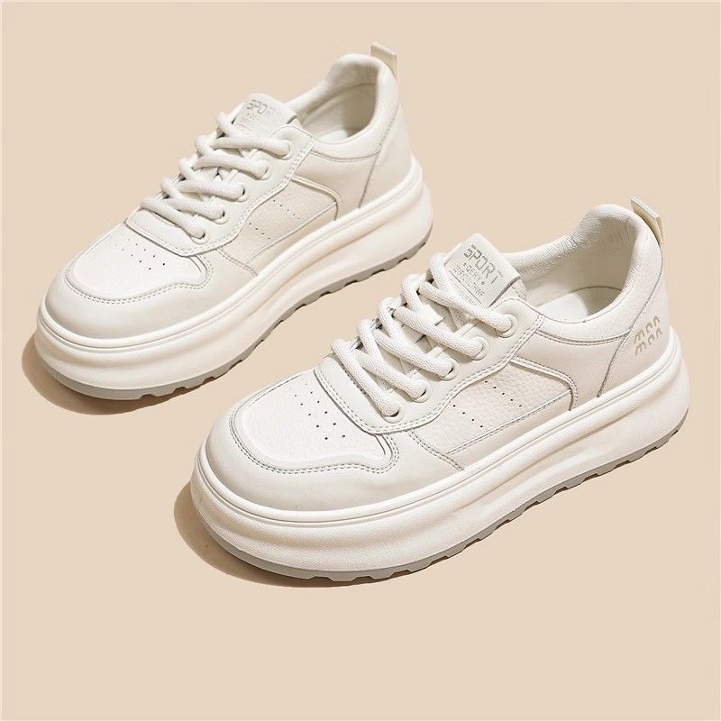 탑 레이어 소 가죽 ~ 가죽 두꺼운 밑창 작은 흰색 신발 여성 신발 조커 보드 신발 2025 새로운 통기성 캐주얼 운동화스토어 가기