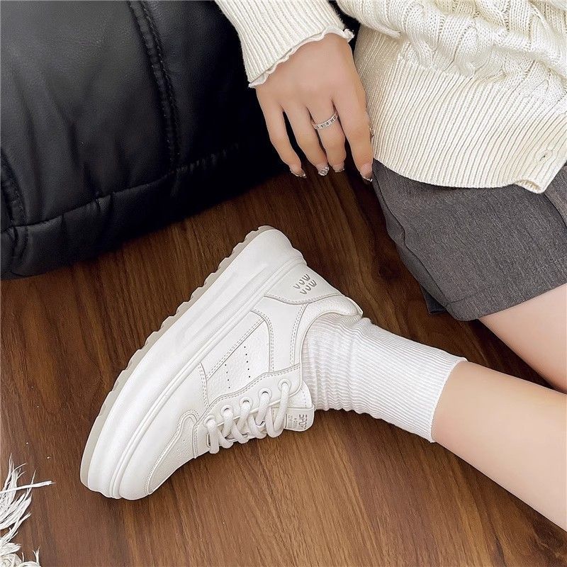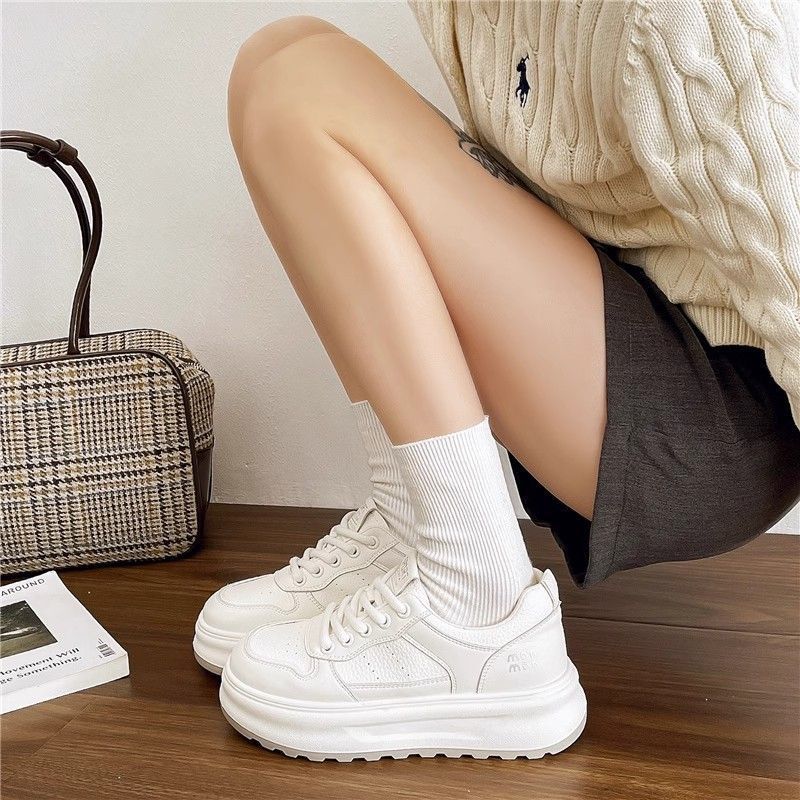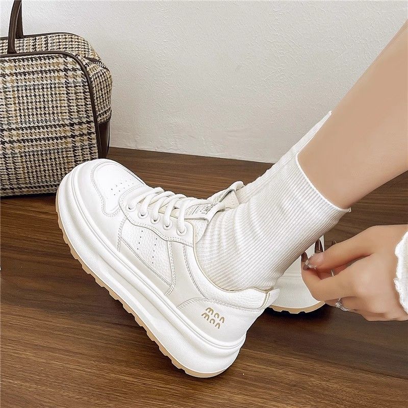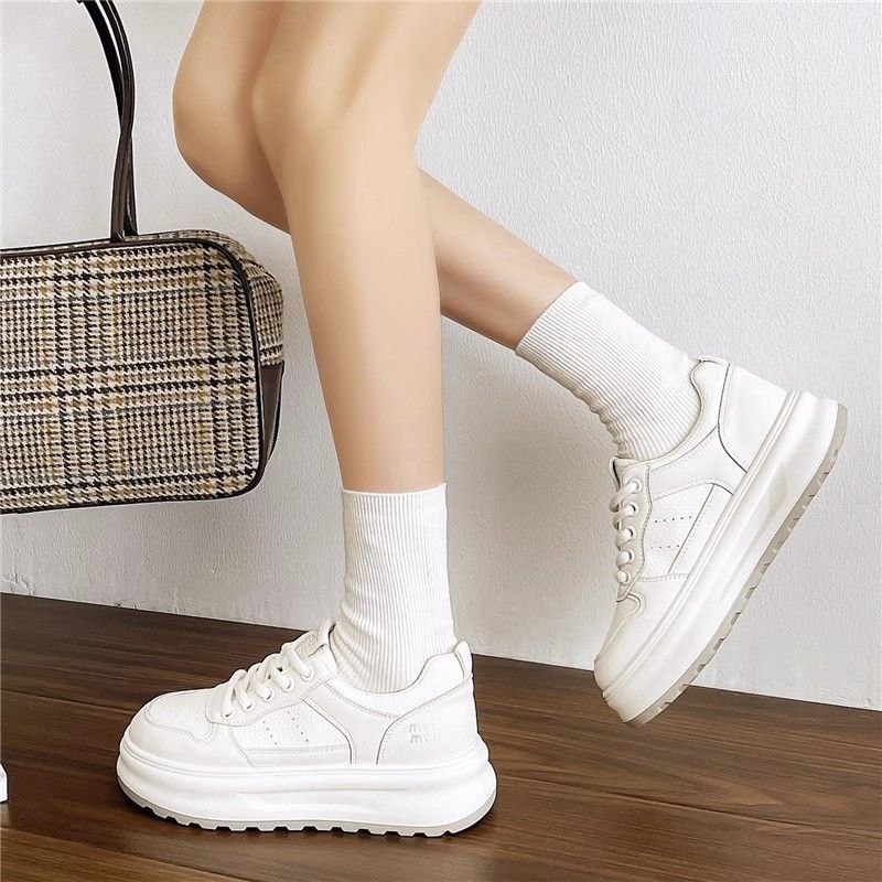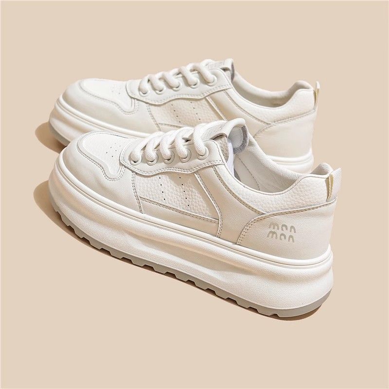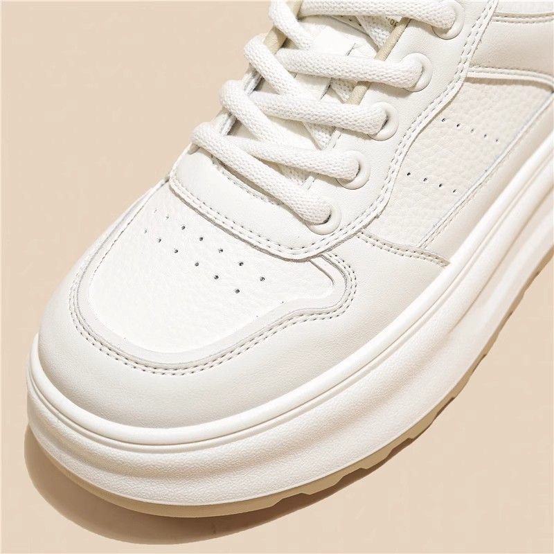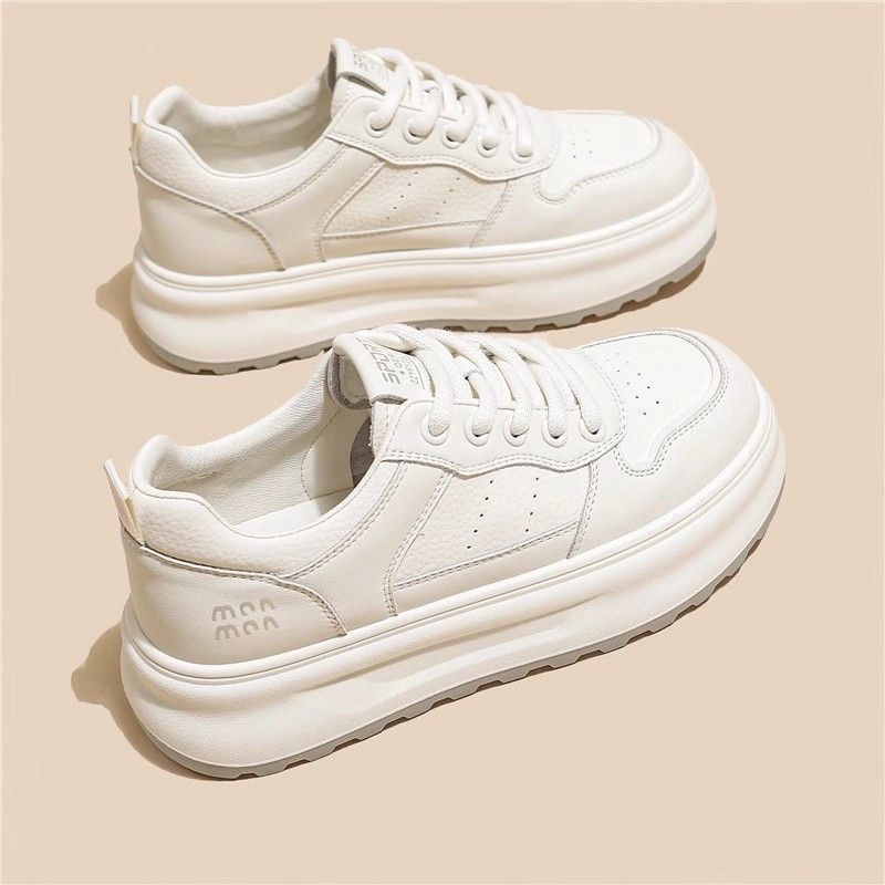 탑 레이어 소 가죽 ~ 가죽 두꺼운 밑창 작은 흰색 신발 여성 신발 조커 보드 신발 2025 새로운 통기성 캐주얼 운동화스토어 가기