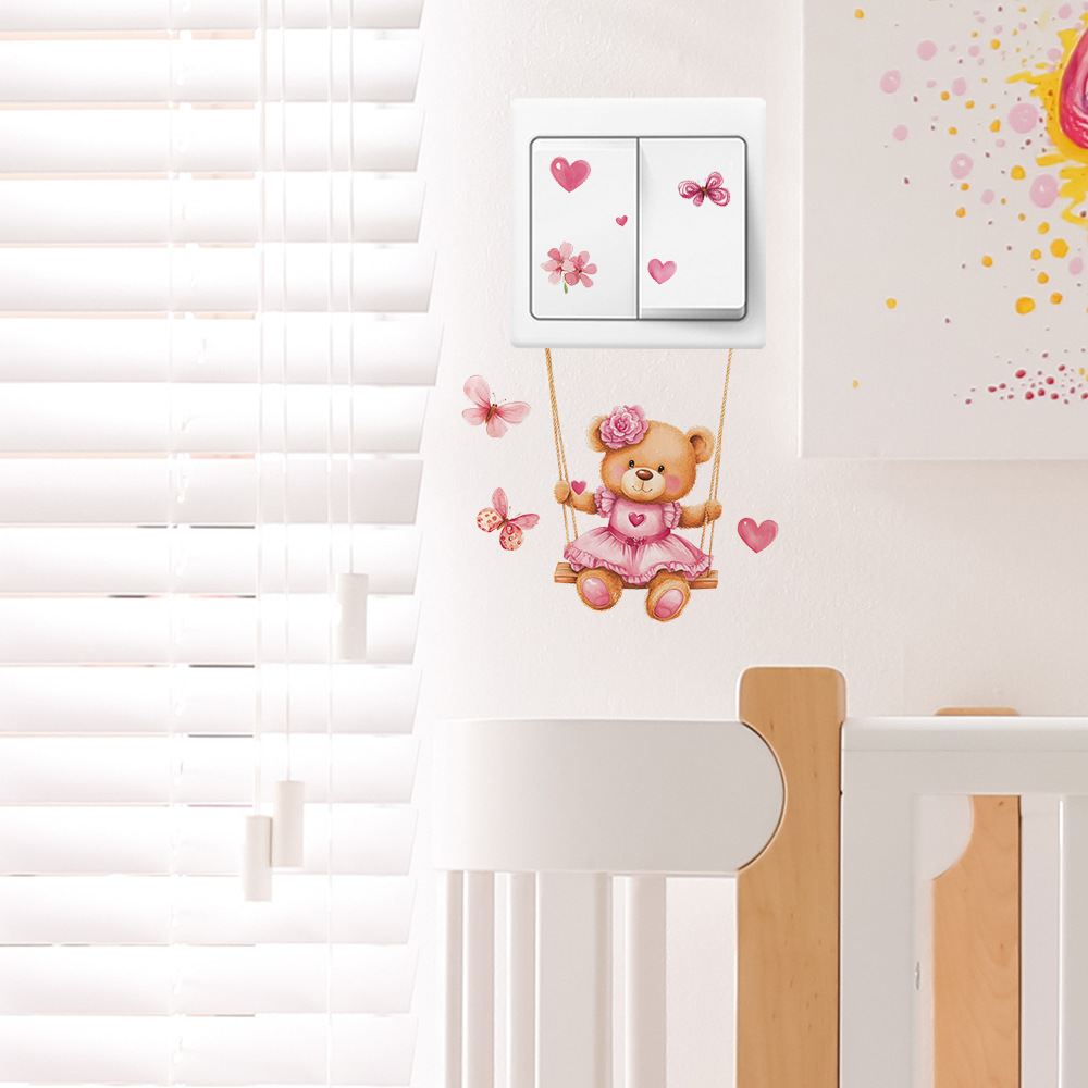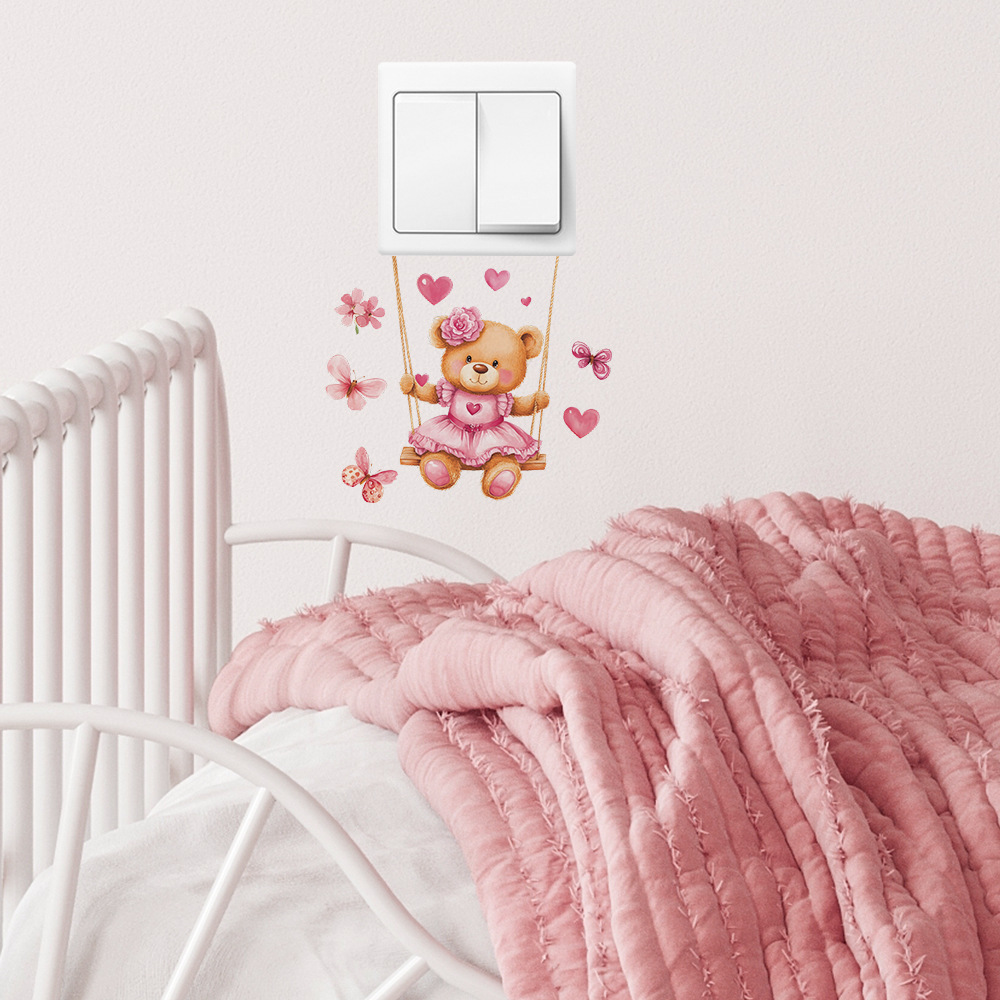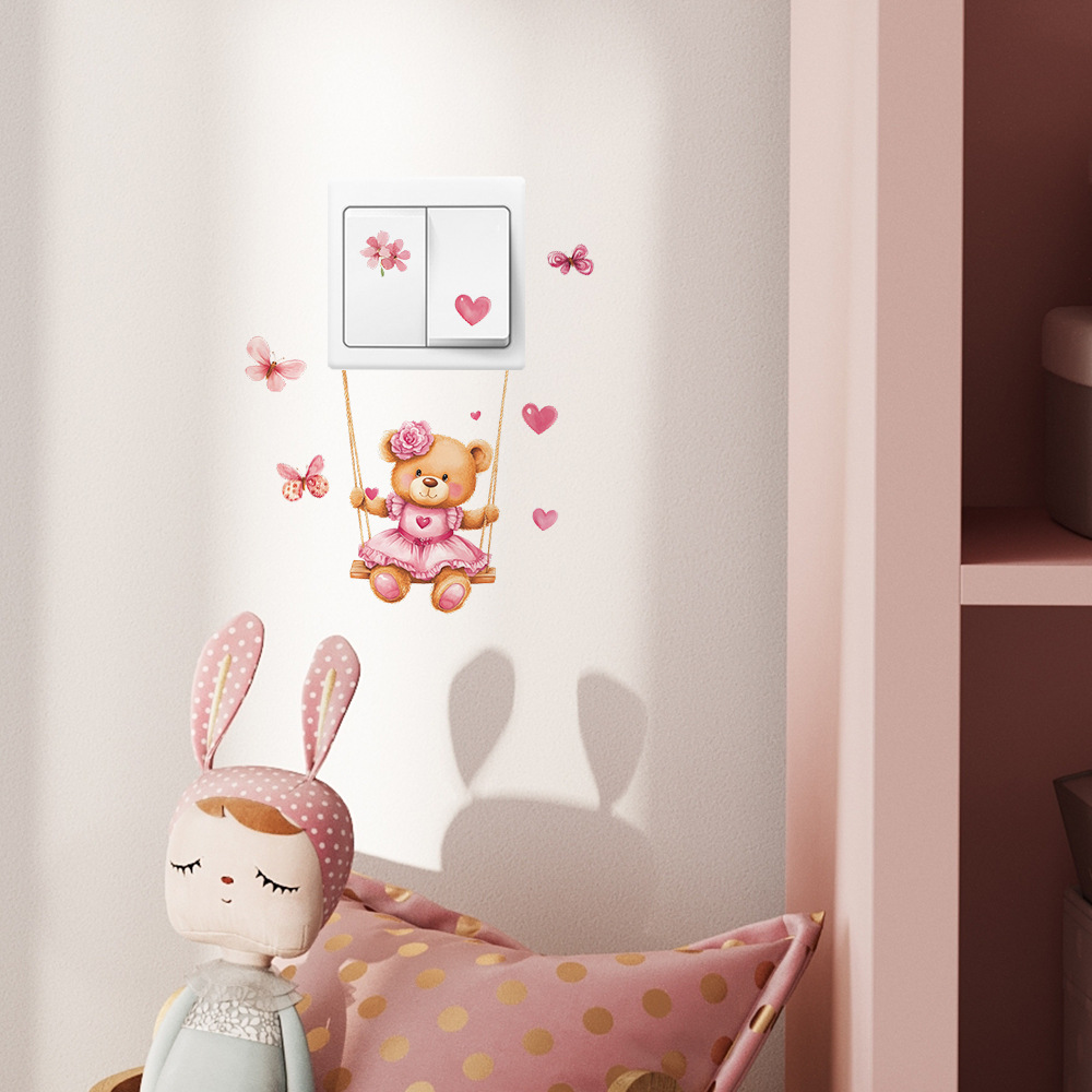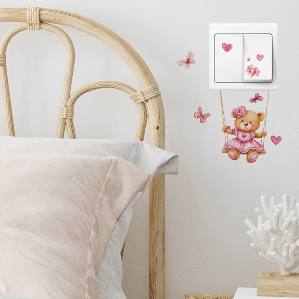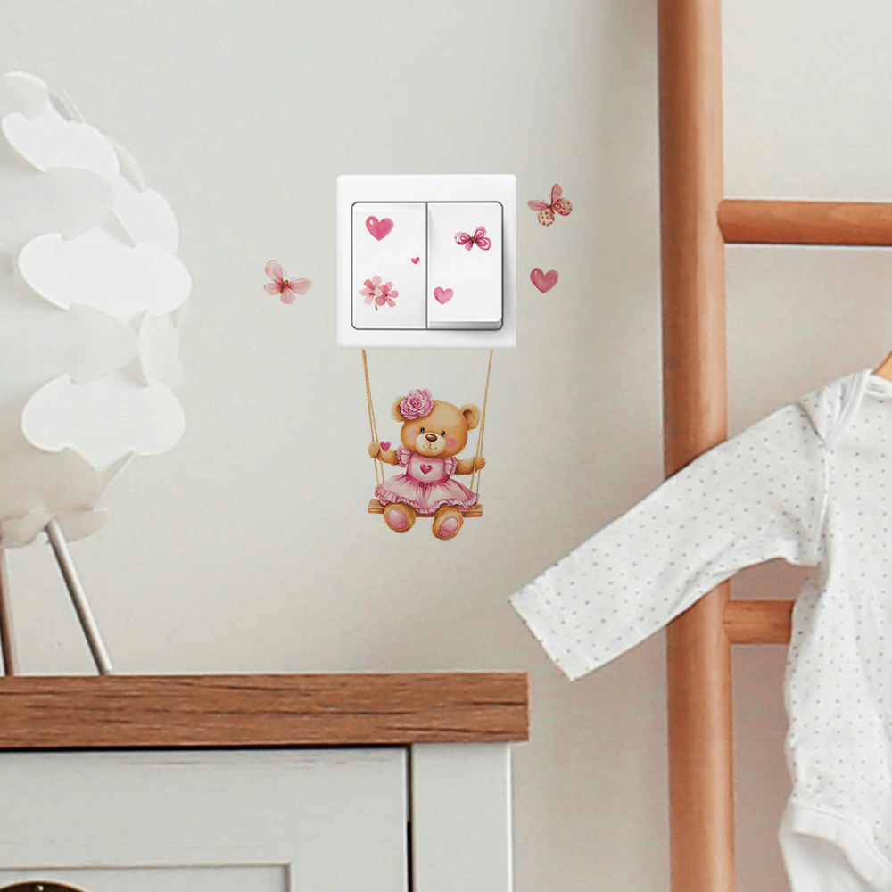 Fun-kg134 만화 곰 스윙 침실 거실 스위치 스티커 배경 미화 벽 스티커 도매스토어 가기