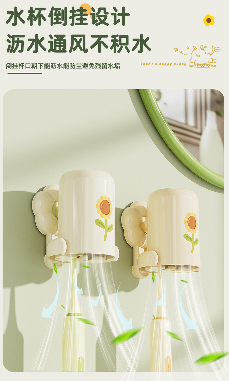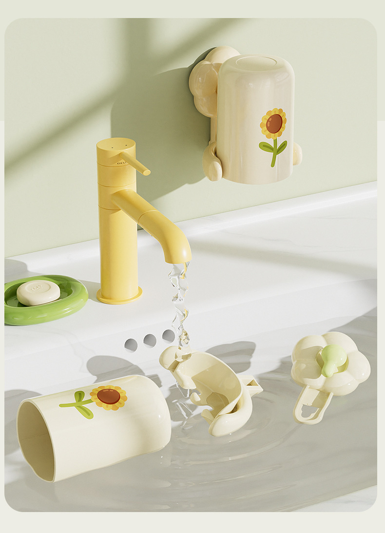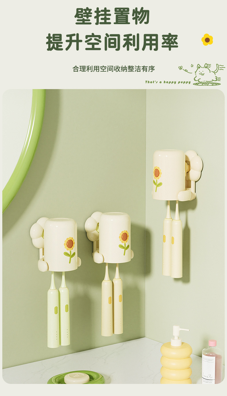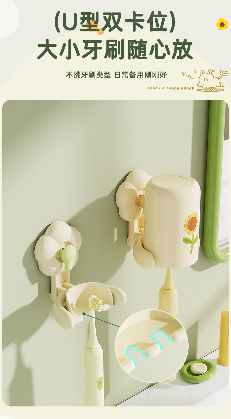 석션 컵 플라워 칫솔 컵 스토리지 랙 벽걸이 형 칫솔은 화장실 마우스 워시 컵 칫솔 컵 치약 랙을 보유합니다.