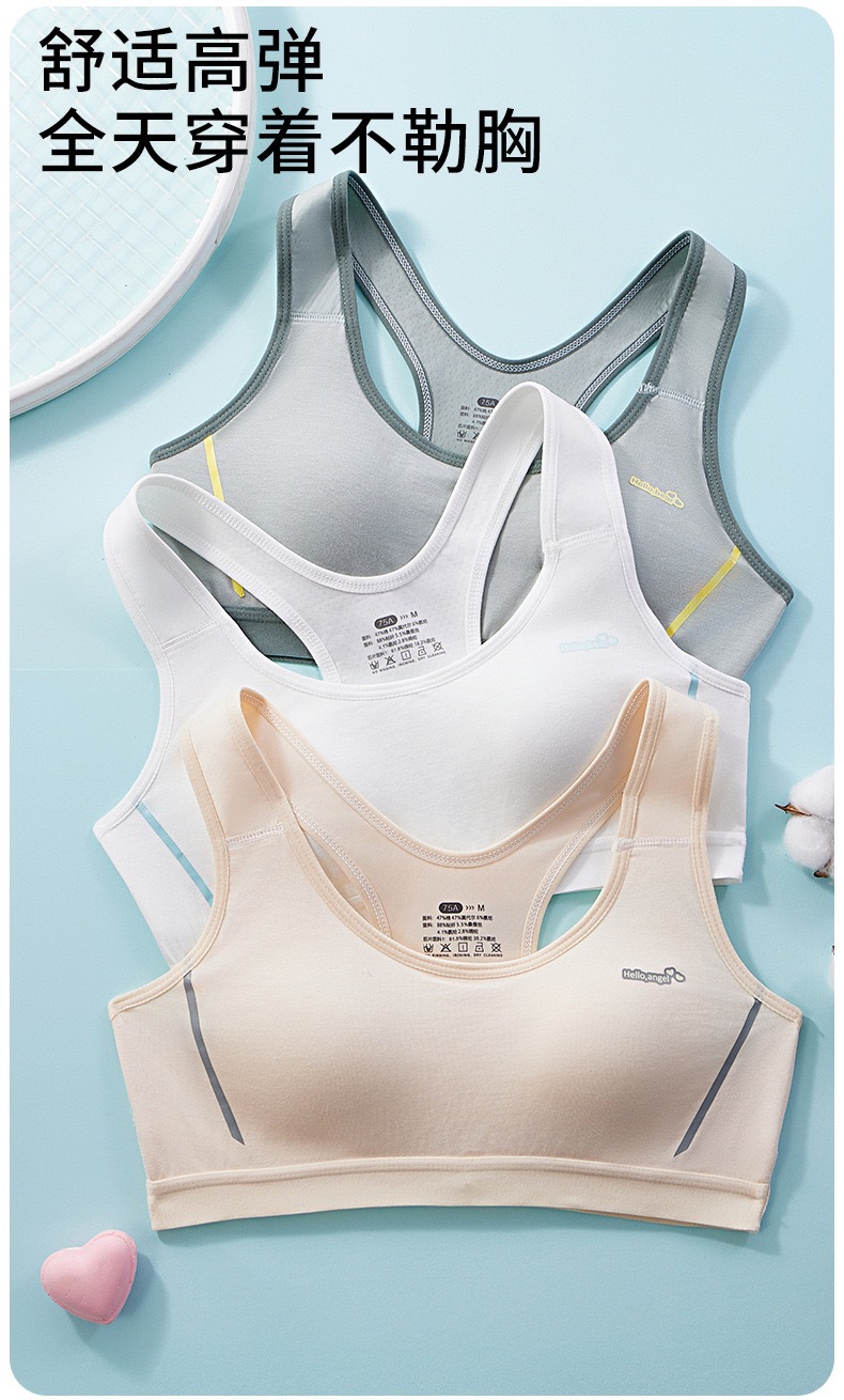 여자 중학교 및 고등학생을위한 고정 컵 스포츠 브라 청소년 충격 방지 여성 발달 실크 속옷 조끼스토어 가기