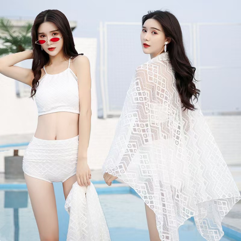 수영복 여성 비키니 3 피스 세트 스플릿 스틸 레이스 섹시 한국식 Ins 온천 인터넷 인기 여성 높은 허리 배꼽 커버스토어 가기