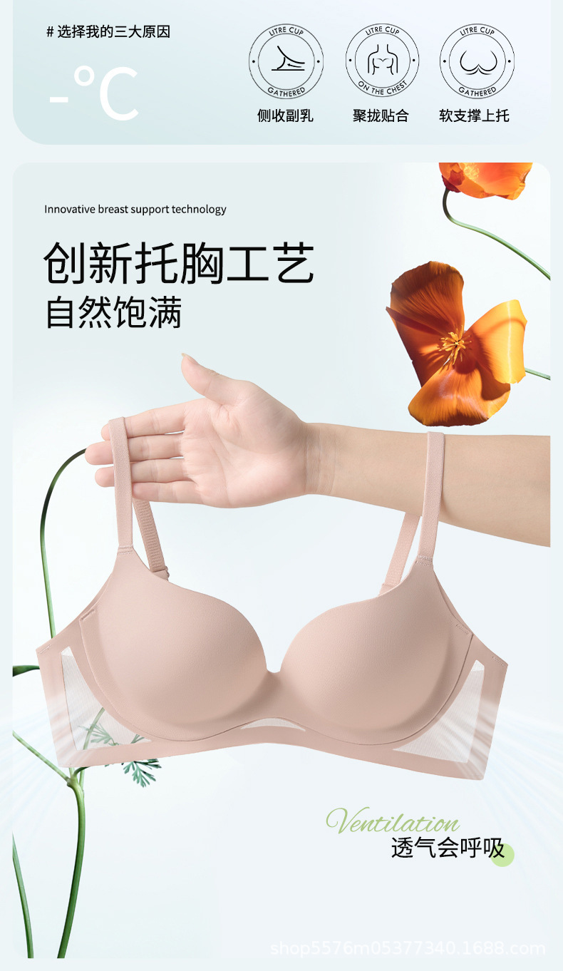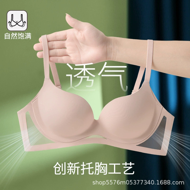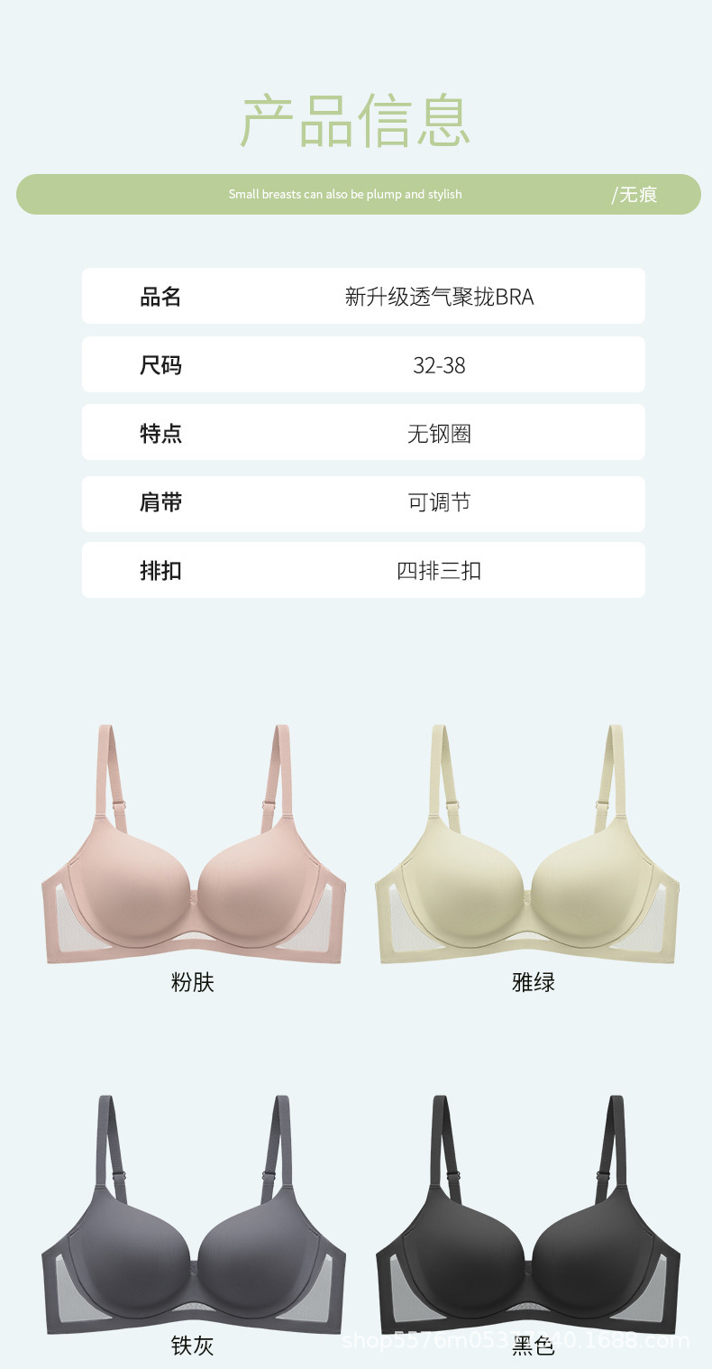 2812原创无痕网纱小胸聚拢内衣女士无钢圈收副乳防下垂美背文胸罩