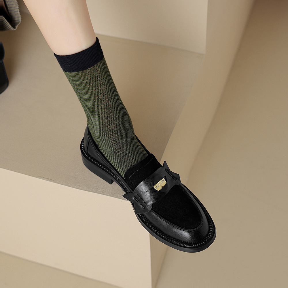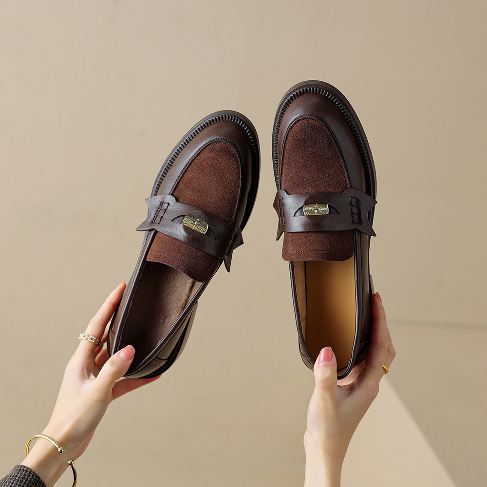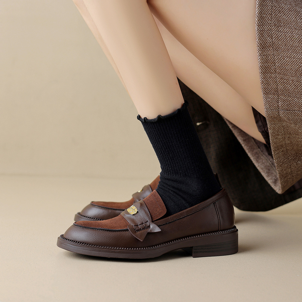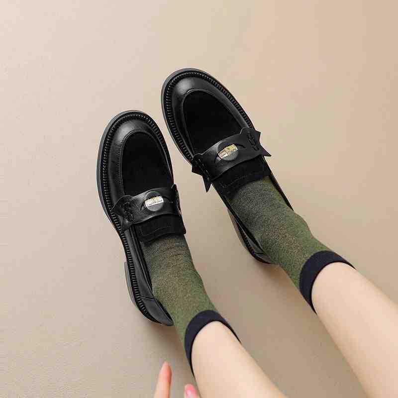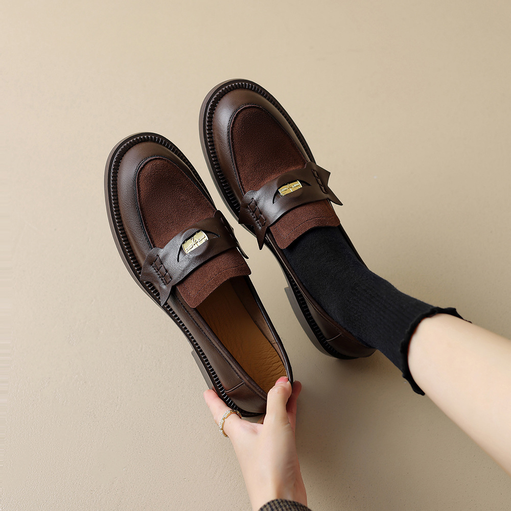 【재고 있음】2913 소프트 가죽 프렌치 레트로 금화 영국풍 슬립온 로퍼 여성용 봄 신발