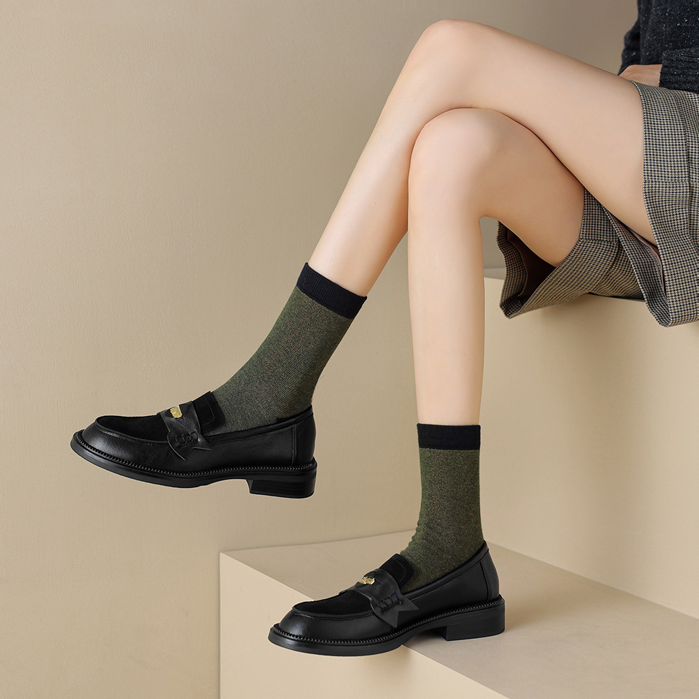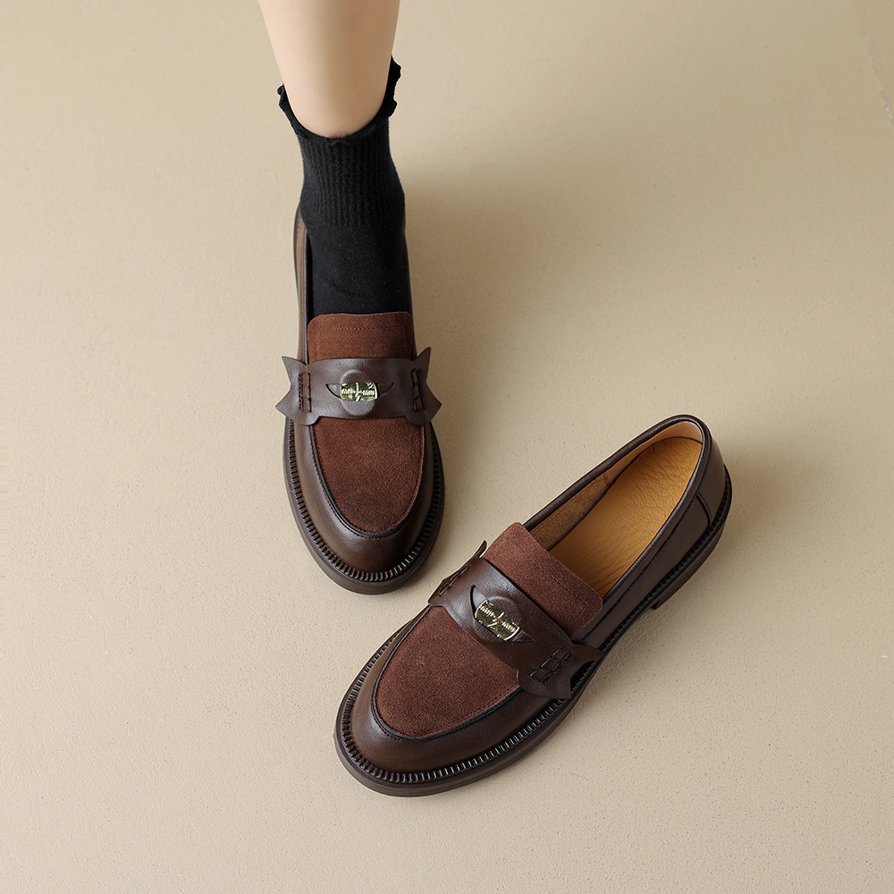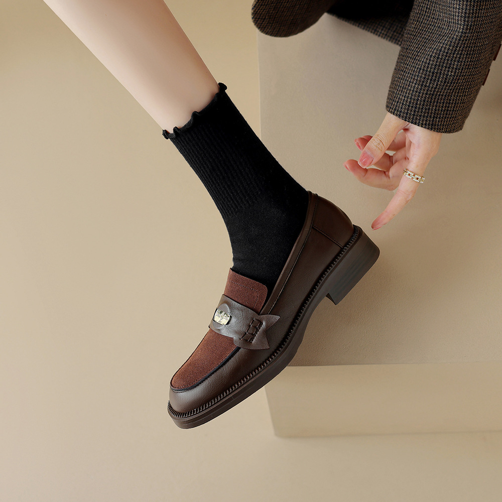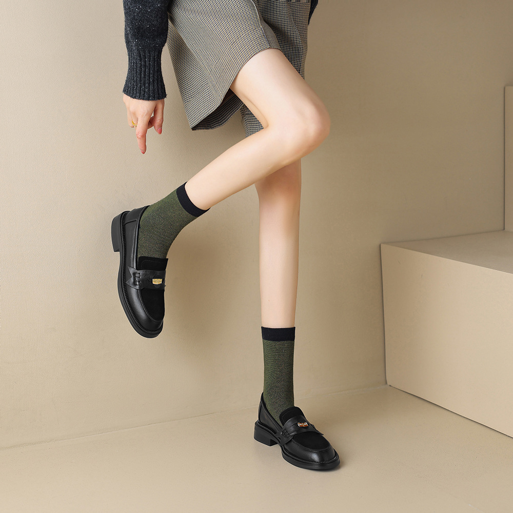 【재고 있음】2913 소프트 가죽 프렌치 레트로 금화 영국풍 슬립온 로퍼 여성용 봄 신발