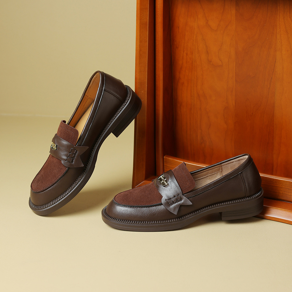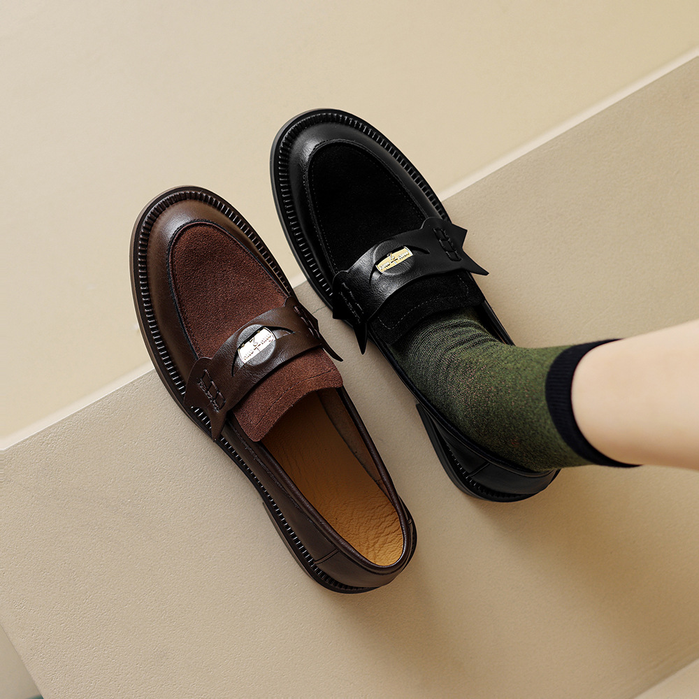 【재고 있음】2913 소프트 가죽 프렌치 레트로 금화 영국풍 슬립온 로퍼 여성용 봄 신발스토어 가기