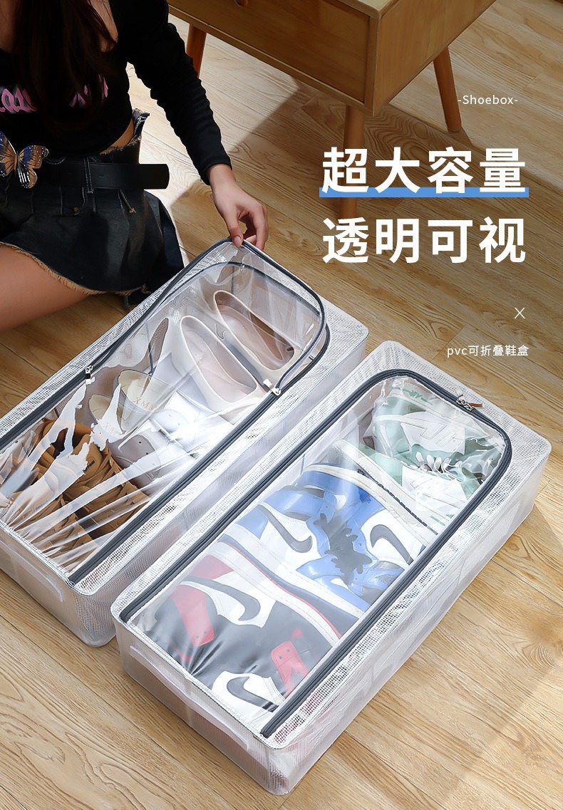 설치없는 침대 바닥 신발 상자 투명 PVC 보관 마무리 저장 방진 및 방습 접이식 신발 보관 상자