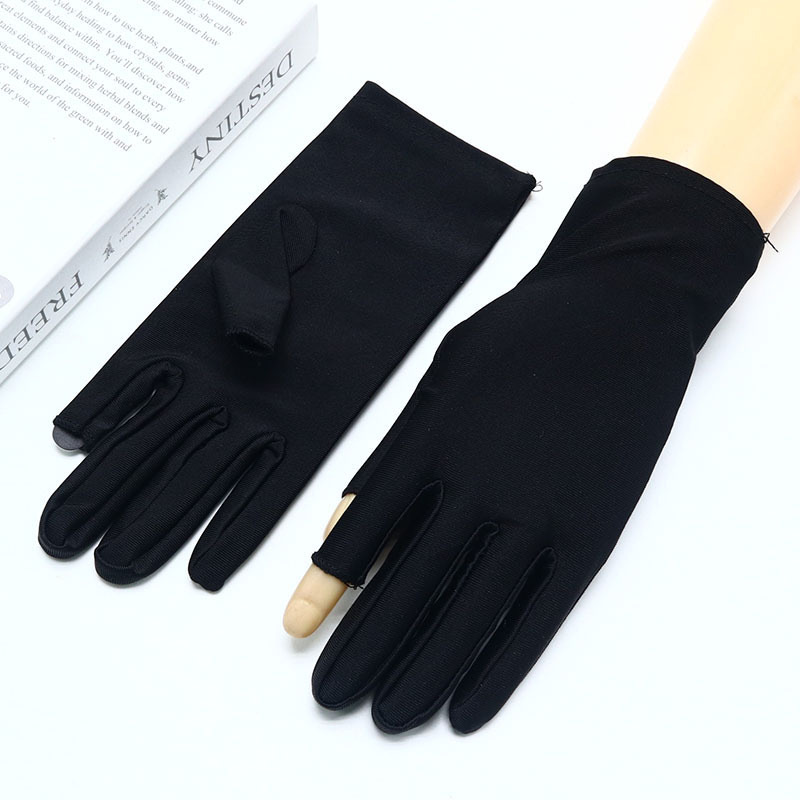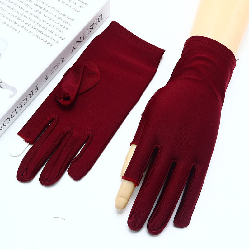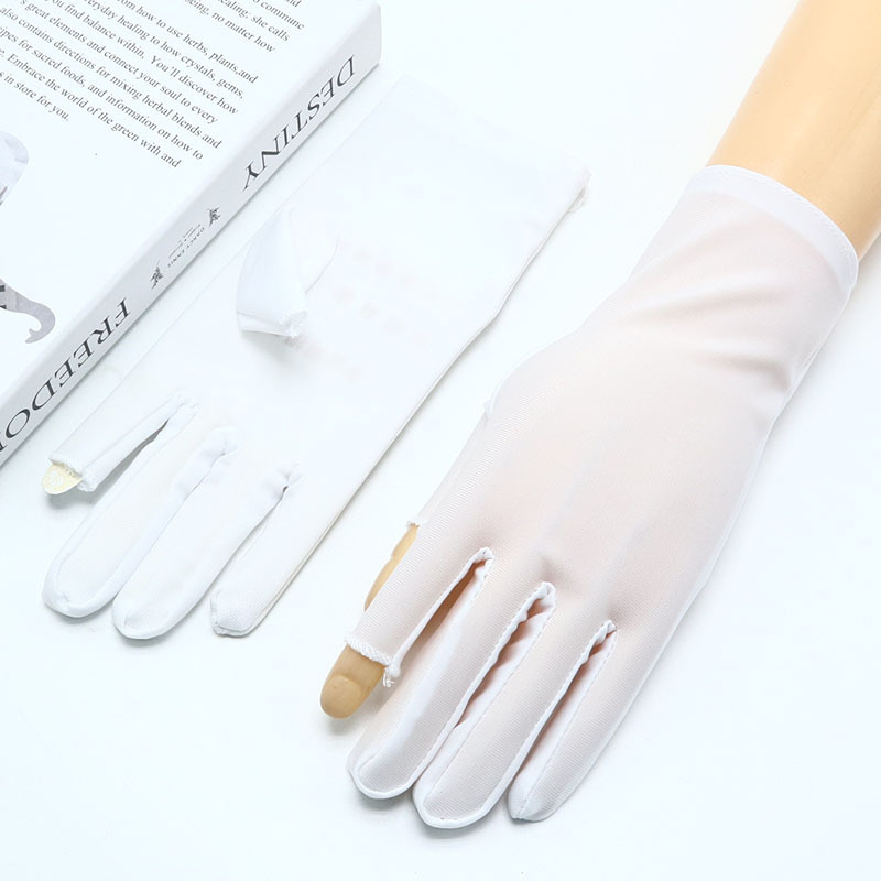스판덱스 장갑 남성과 여성의 높은 탄성 얇은 흰색 에티켓 차 따기 봄과 여름 공연 댄스 쥬얼리 승무원 하프 핑거