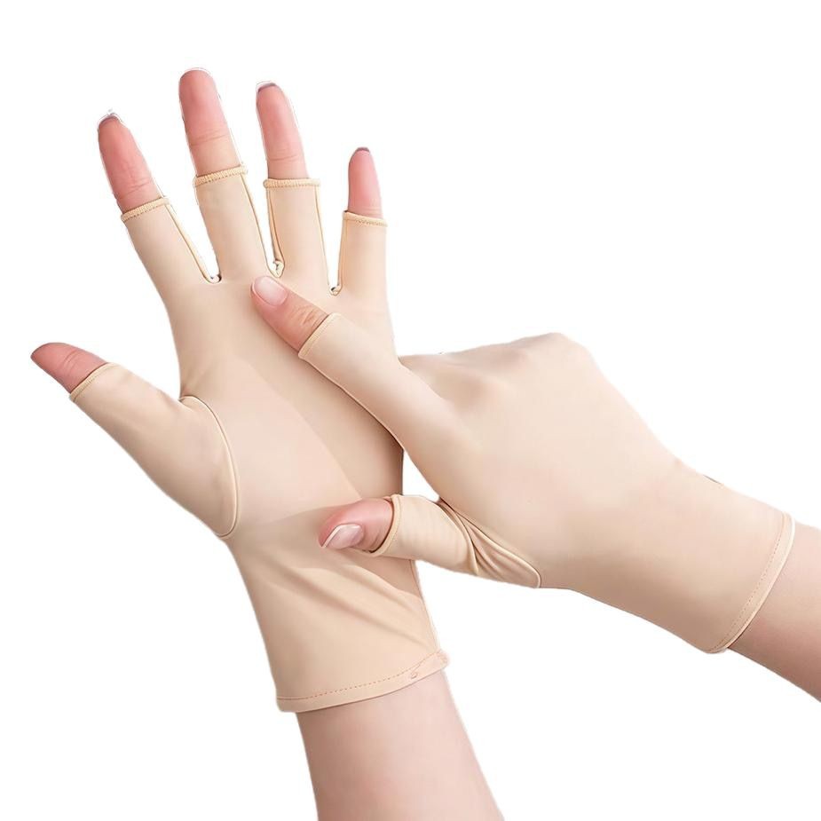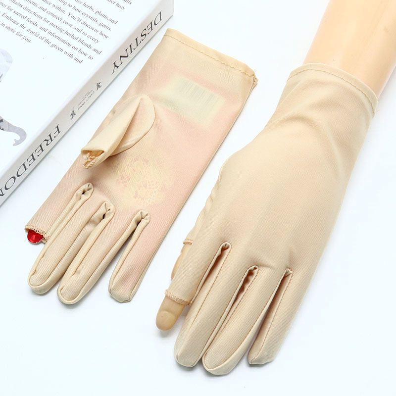 女士氨纶手套白色弹力薄款紧身透气舞蹈礼仪开车防晒半指采茶春夏