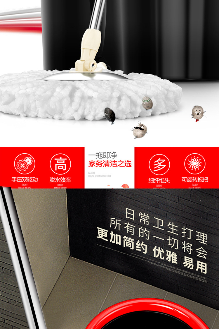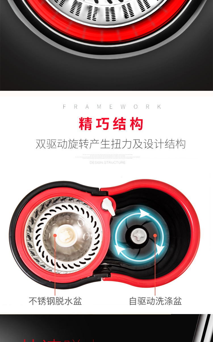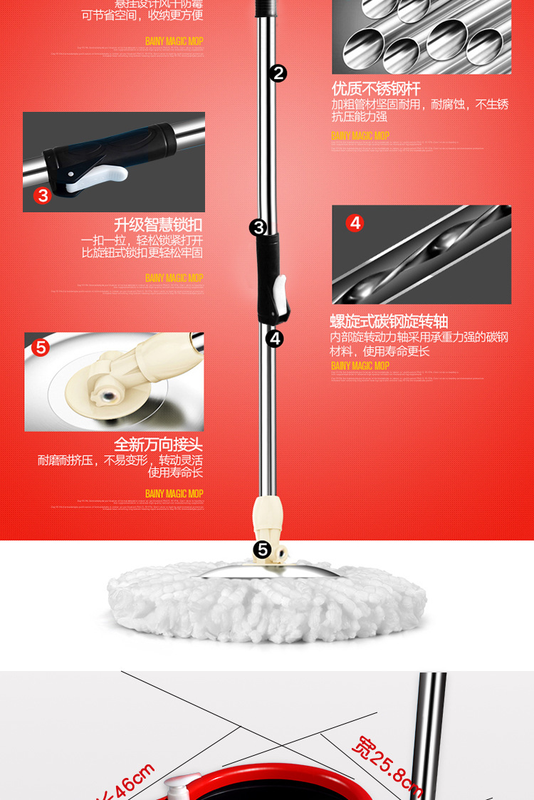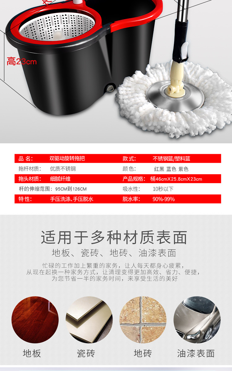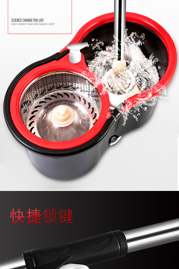 걸레 건조하고 젖은 이중 사용 두꺼운 손으로 씻을 수있는 로터리 걸레 버킷 가정용 바닥 타일 Haoshen Mop 천 Ruizhi 실버스토어 가기