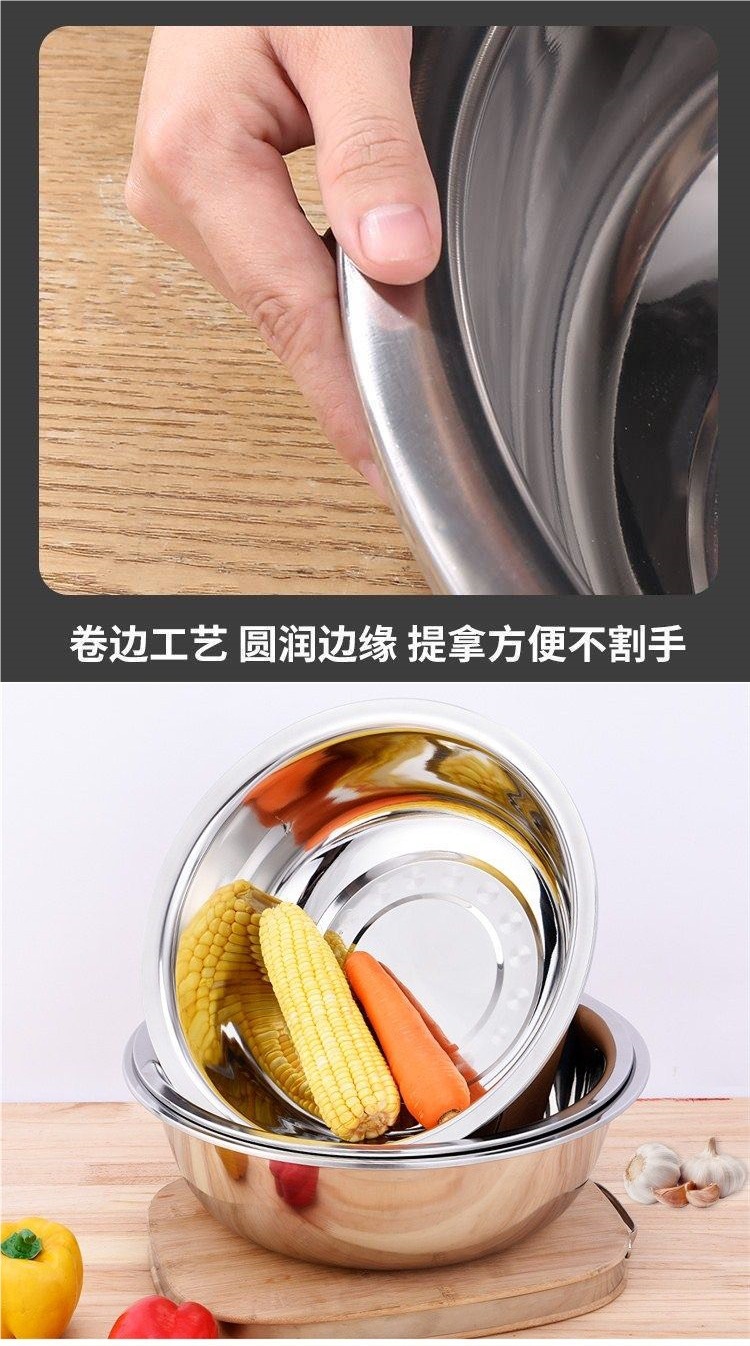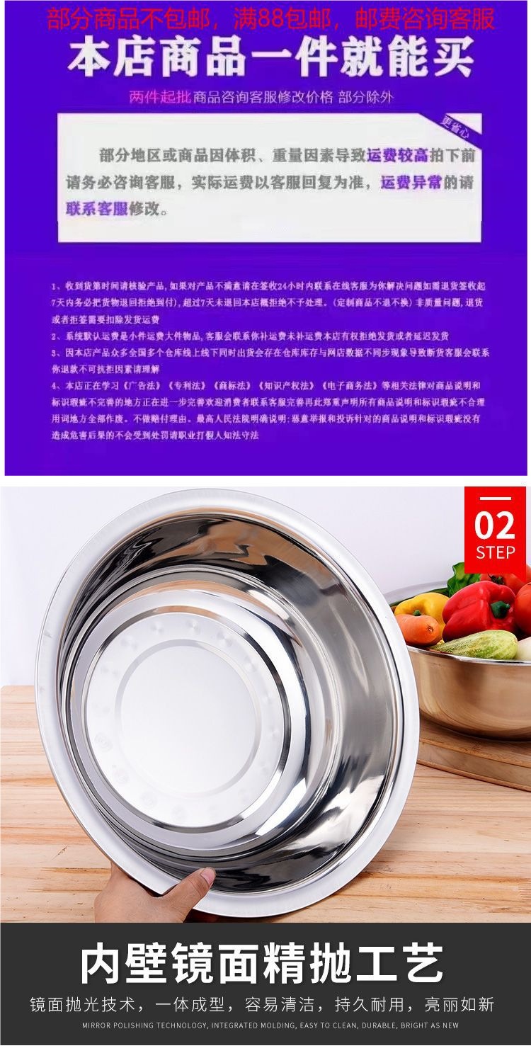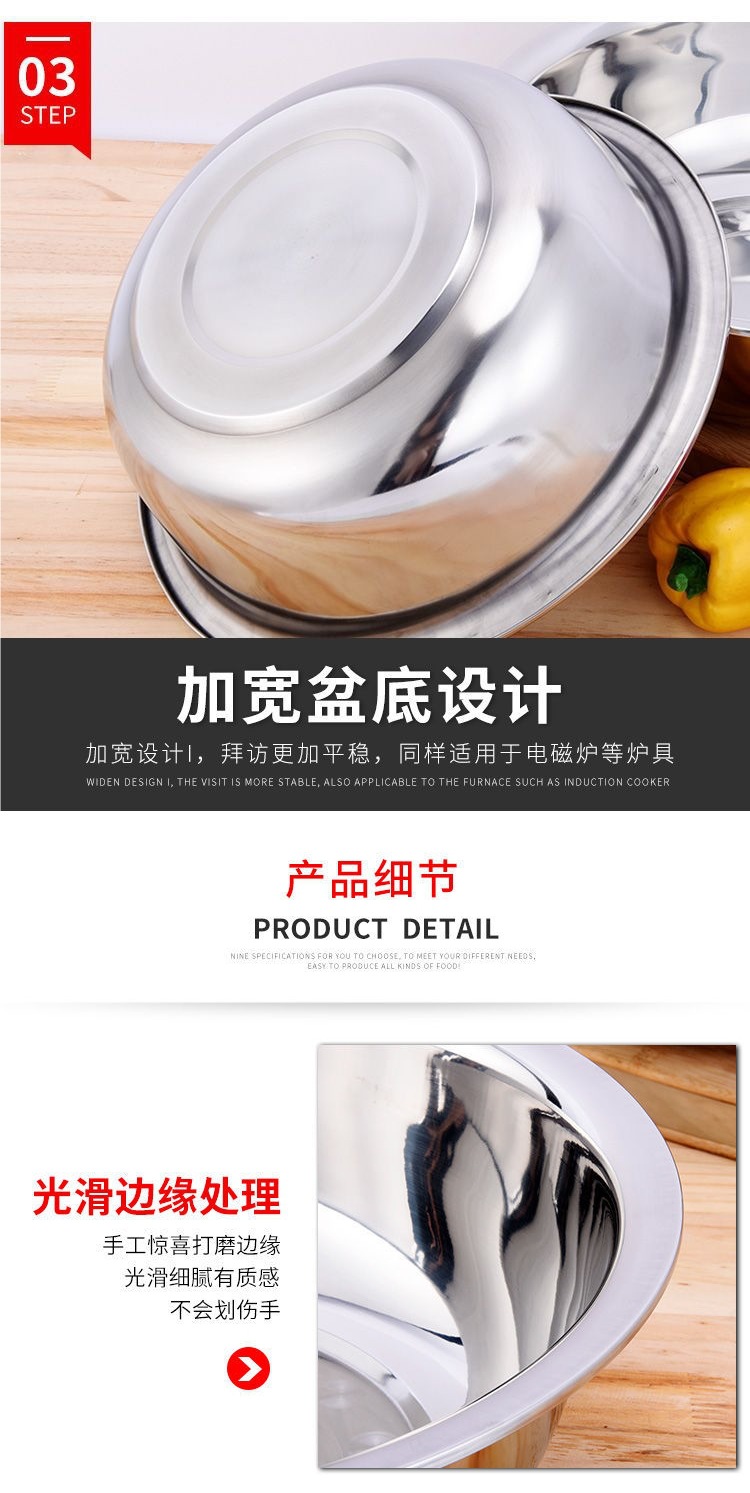 식품 학년 스테인레스 스틸 분지 가정용 주방 계란 박동 및 얼굴 분지 야채 세척 큰 분지 두꺼운 수프 분지 Zhuo Yongteng 없음