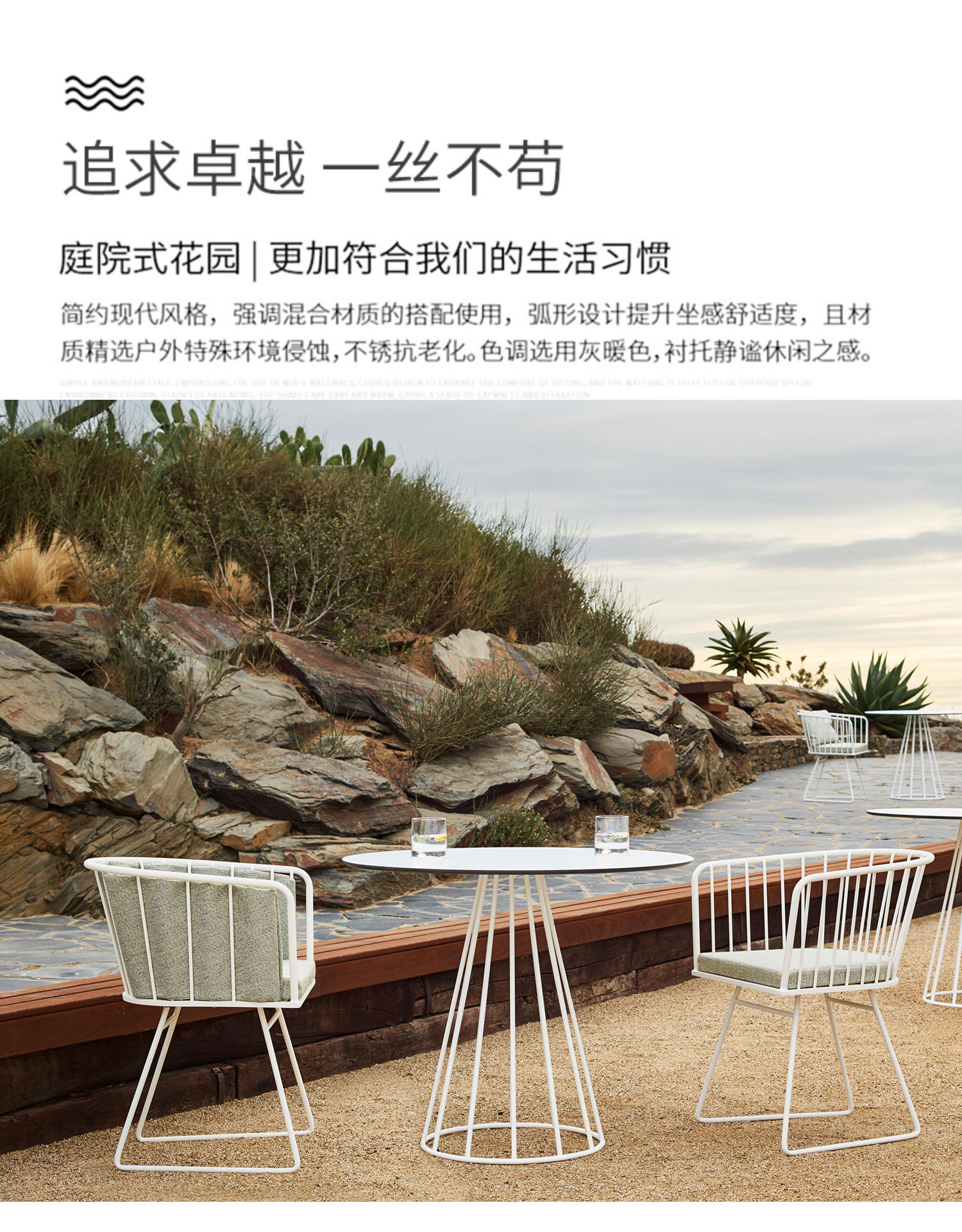 야외 테이블과 의자 코트야드 빌라 정원 풍경 우유 차 가게 카페 테이블과 의자의 야외 방비 태양 세트